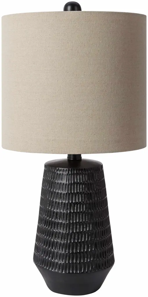 Collection: Berehomet Colors: Black, Beige, White, Metallic - Brass Material: Body: Resin,Shade (Outside): Linen,Shade (Inside): Polyester,Finial: Iron Styles: Southwestern Made In: China Lighting Type: Accent Table Lighting Shade Material: LinenPolyester Shade Color: WhiteBeige Cord Length: 6' Switch Type: On/Off Number of Bulbs: 1 Socket Type: E-26 Bulb Wattage: 60W