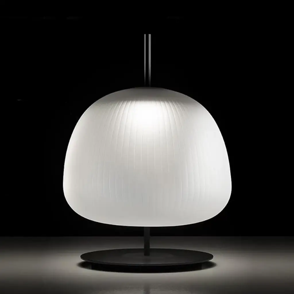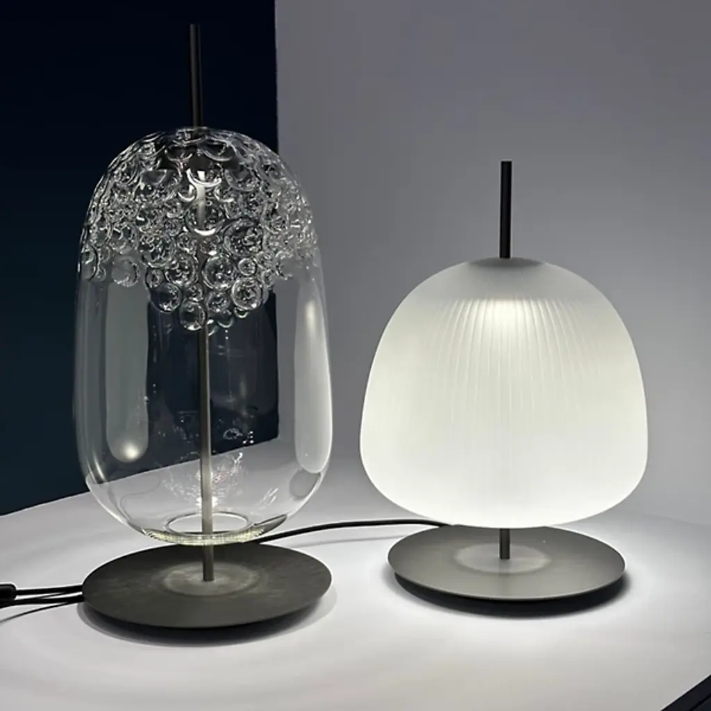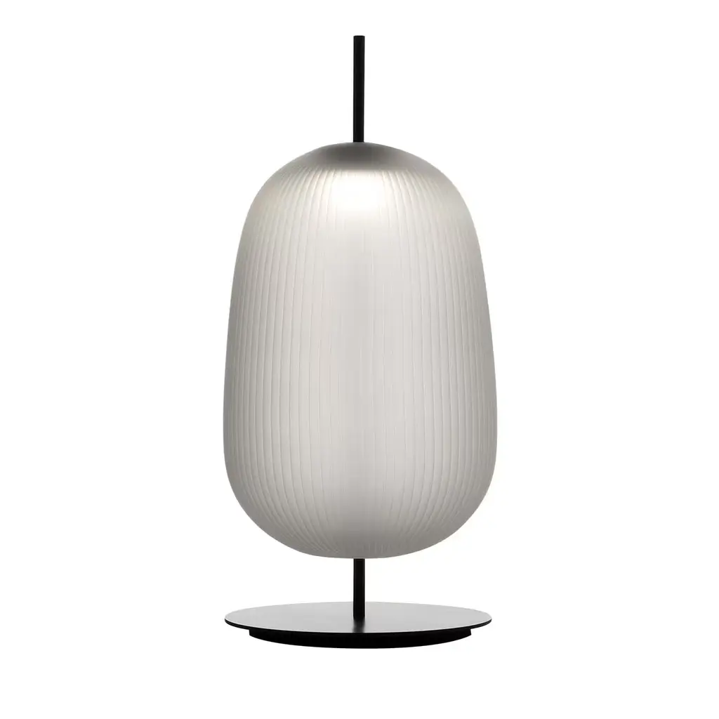 The Bes LED Table Lamp by Melogranoblu is an elegant, handblown-glass design from Ermanno Rocchi and Massimo Crema that bears the name of an ancient divinity known as a protector of the household. Characterized by thin lines that create a pleated effect around its soft shape, the glass shade of this design is supported by a minimal metal base that appears to pierce its form. Creating a textured space that filters a lovely layer of light, this table lamp balances both form and function with a simple yet stunning design.