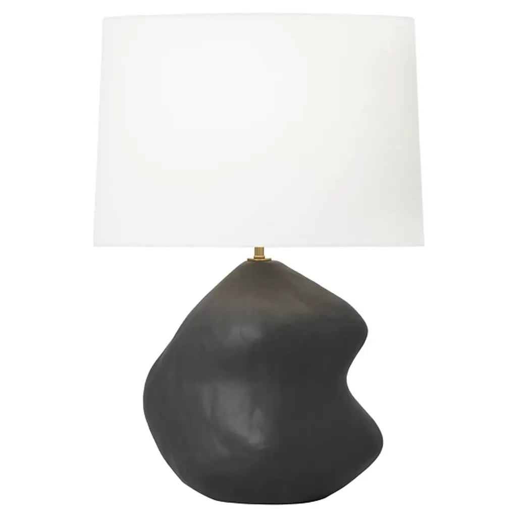 Undulating curves of mold-cast textured white resin soften the shape of a traditional urn lamp base topped with a linen shade. Now available in Navy!