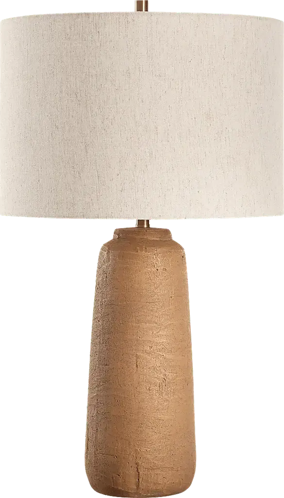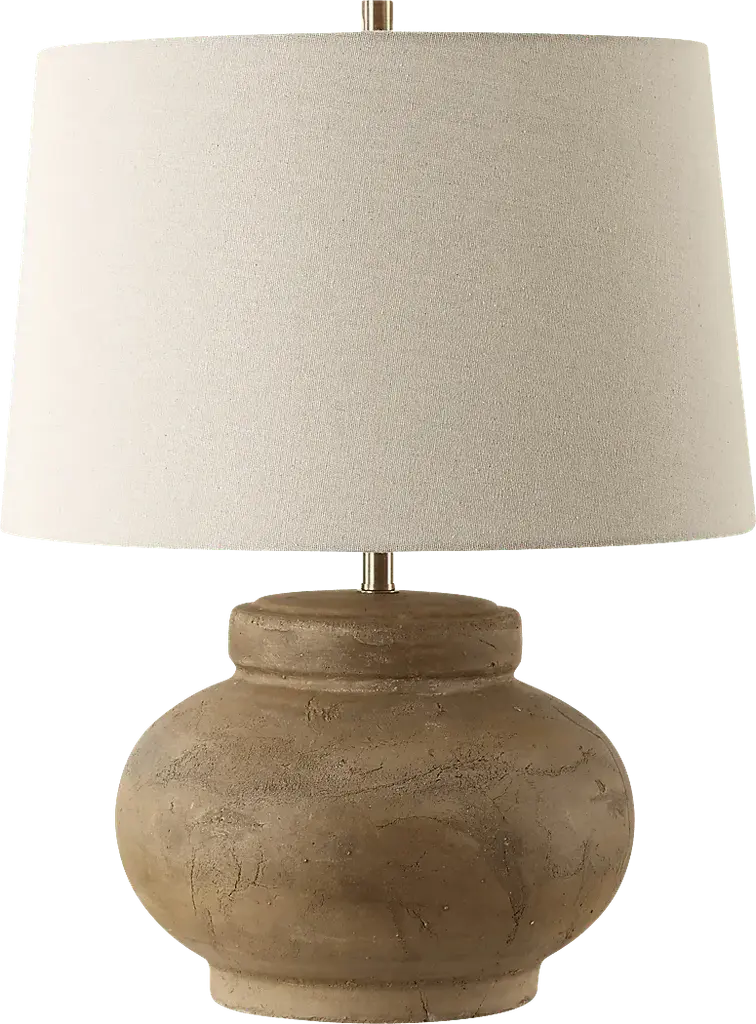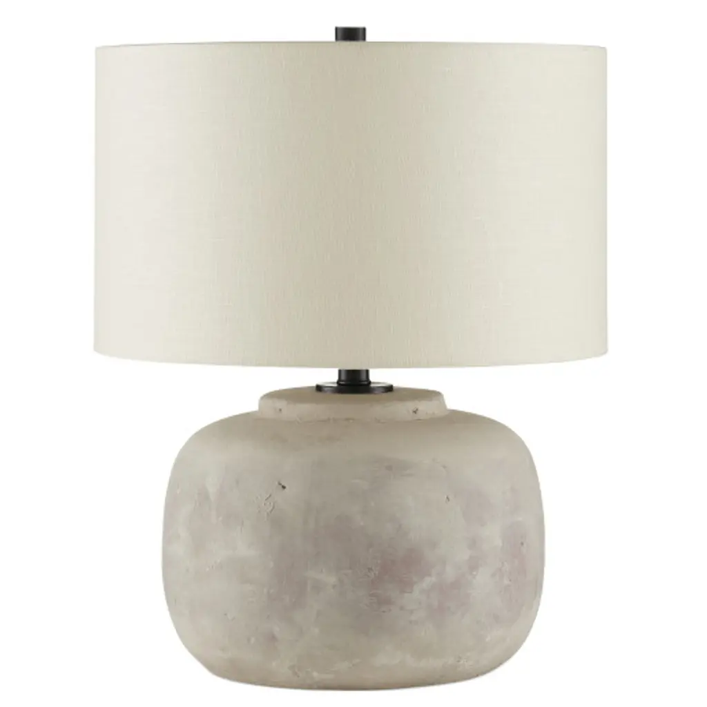 The Beton Table Lamp features a distressed finish on its concrete body, showcasing the skilled craftsmanship of our artisans who create beautifully aged products. This lamp is complemented by a light beige linen shade, adding a touch of elegance to its design.