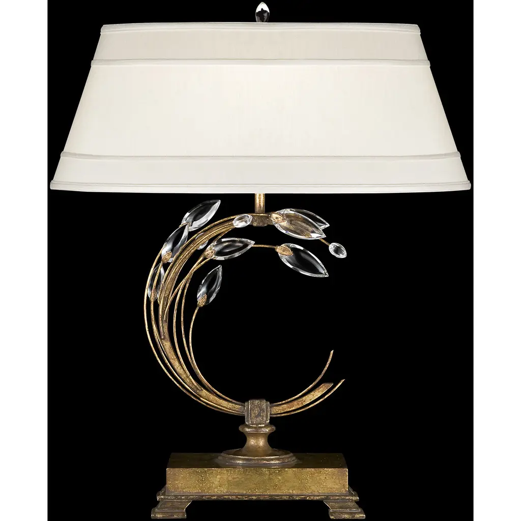 Table lamp in warm muted silver leaf finish. Features laminated shade.