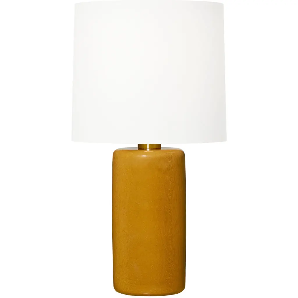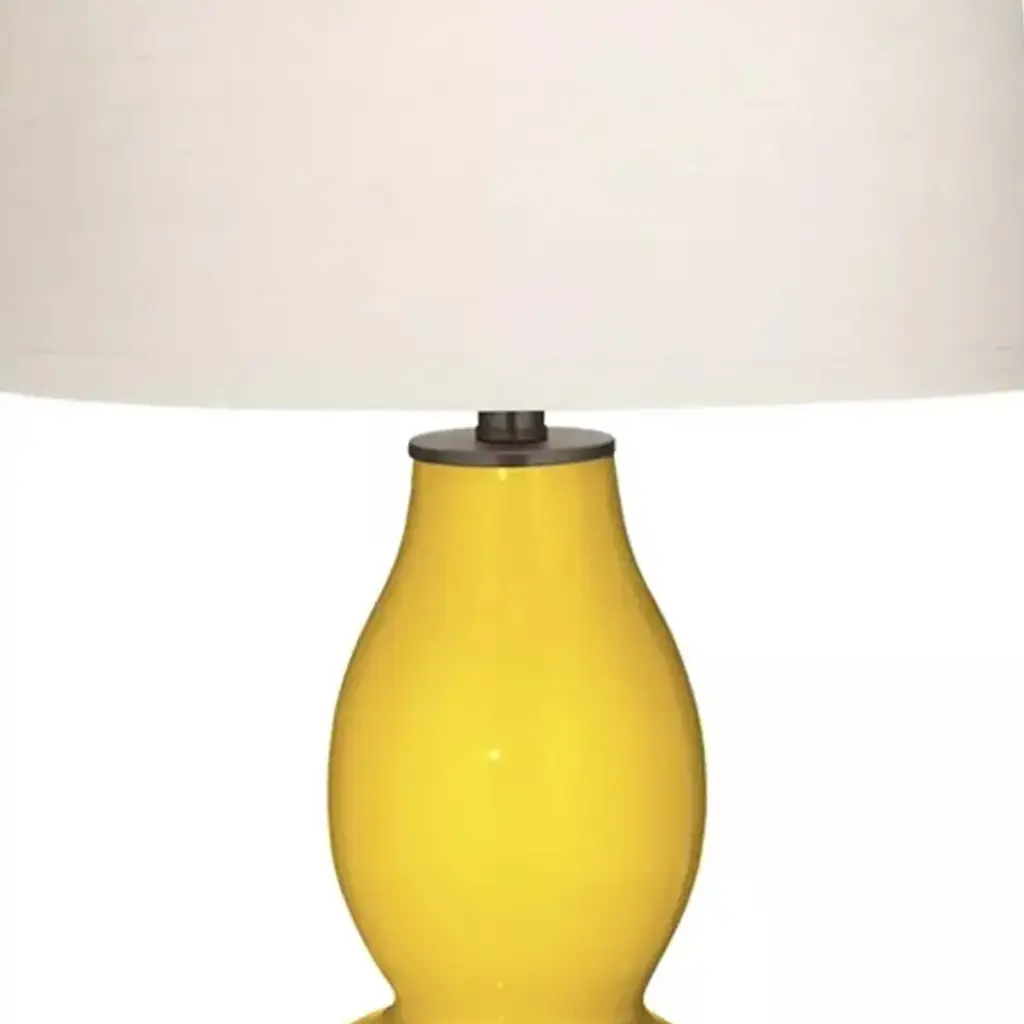 Collection: Bhadravati Colors: Orange, White, Metallic - Brass, Translucent Material: Body: Ceramic / Shade (Outside): Polyester / Finial: Iron Styles: Traditional Made In: China Lighting Type: Accent Table Lighting Shade Material: Polyester Shade Color: White Cord Length: 6' Switch Type: On/Off Number of Bulbs: 1 Socket Type: E-26 Bulb Wattage: 100W
