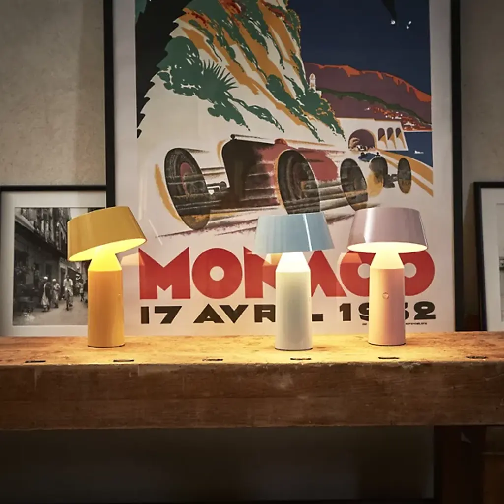 Modern style with refined details. The Bicoca Rechargeable LED Table Lamp by Marset presents a new level of style and function. This table lamp is more than just decorative lighting option – its compact, wireless design lets you easily move it from room to room with ease. The conical base is made from sturdy polycarbonate materials and you can position the rotating shade to direct light wherever you need it.