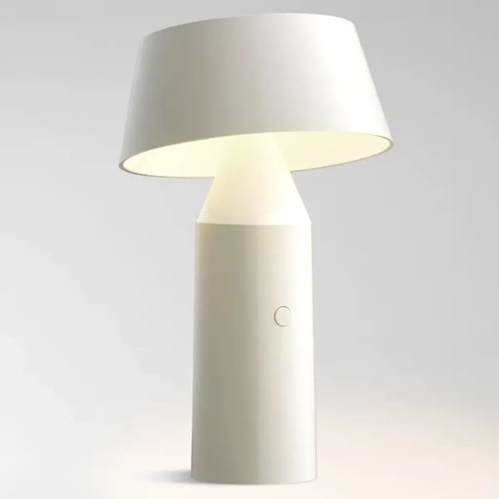 Modern style with refined details. The Bicoca Rechargeable LED Table Lamp by Marset presents a new level of style and function. This table lamp is more than just decorative lighting option – its compact, wireless design lets you easily move it from room to room with ease. The conical base is made from sturdy polycarbonate materials and you can position the rotating shade to direct light wherever you need it.
