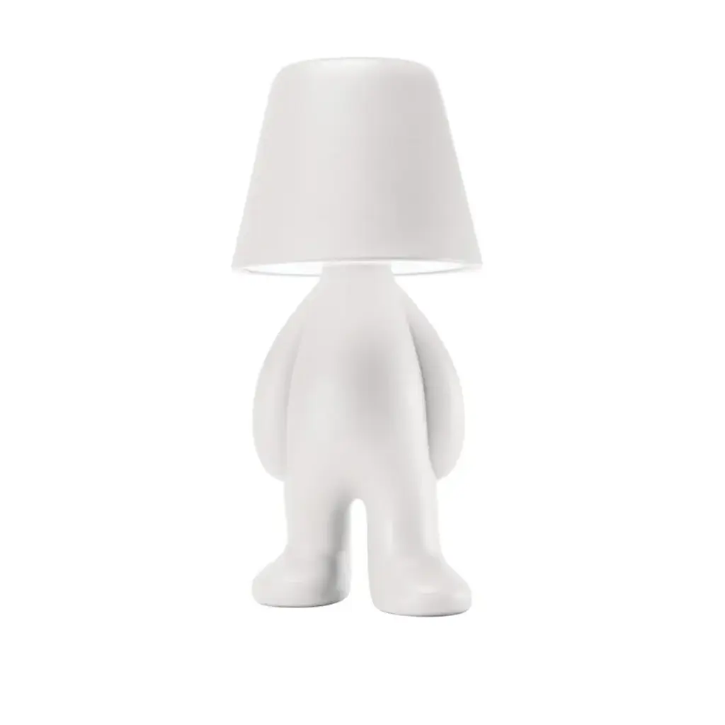 Qeeboo introduces the latest addition to the Golden and Sweet brothers family: the Bigger Brother. This new member expands the family maintaining the same endearing posture of the renowned Tom lamp. Crafted to illuminate the space, the Bigger Brother is a cable lamp equipped with an integrated switch that allows to light up his head. Available in a range of different colors from solid to recycled mixed blends, he can be a bedside companion, a reading light, or a decorative accent.
