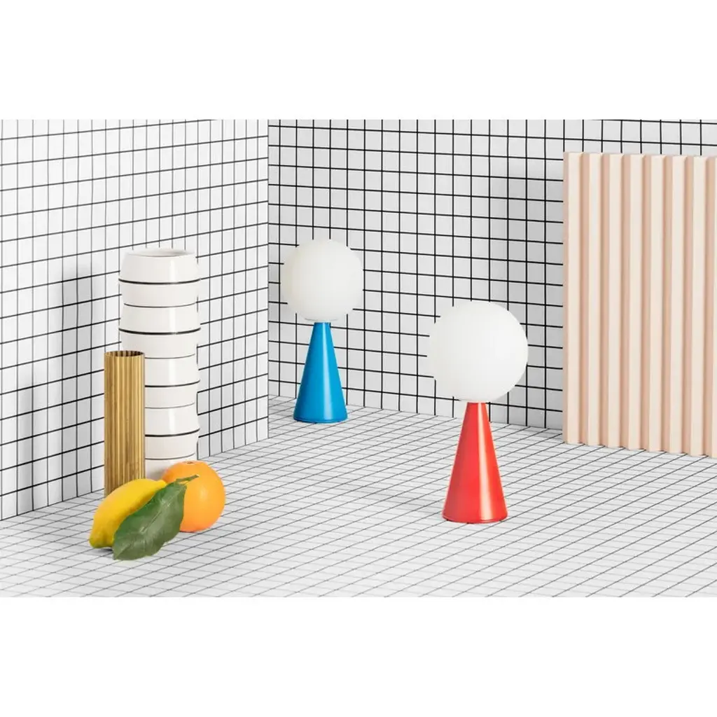 Bilia Mini table lamp, designed by Gio Ponti for FontanaArte, is an Italian design classic from 1932. Bilia Mini combines two essential geometric shapes, a sphere and a cone, in a skilful and balanced manner. The round, frosted glass shade is supported by an upward-tapering metallic base. Bilia Mini range consists of compact yet captivating table lamps in either metallic finishes or coated in colors.