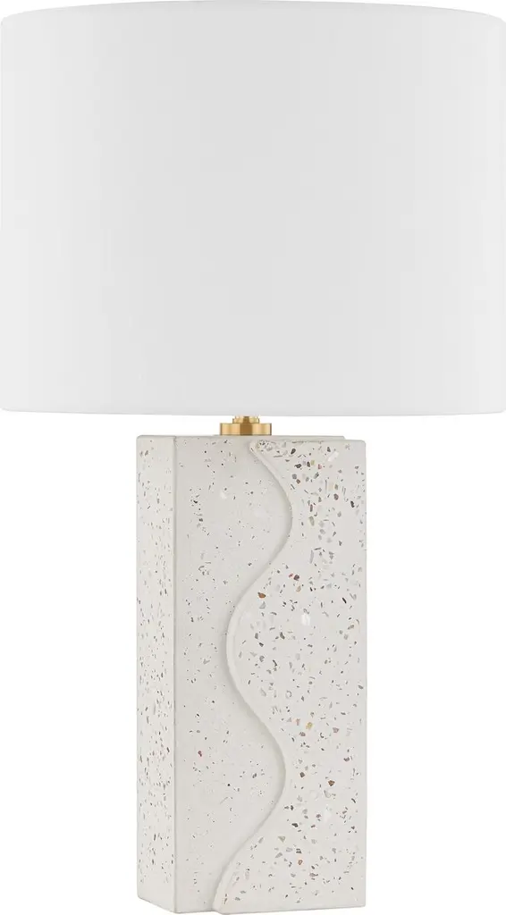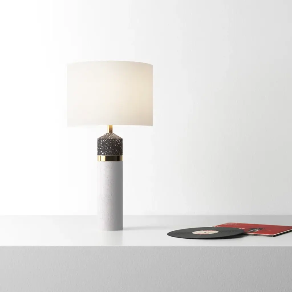 The curated interior takes on equal doses of glamour and architectural persuasion with this table lamp design. A collage of terrazzo, antique brass, and antique cotton, its diverse arrangement increases its star power. The design adds a dynamic appeal to the home when lit and unlit alike.