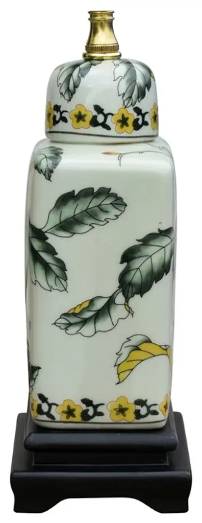 Bird And Floral Porcelain Tea Caddy Table Lamp 17"