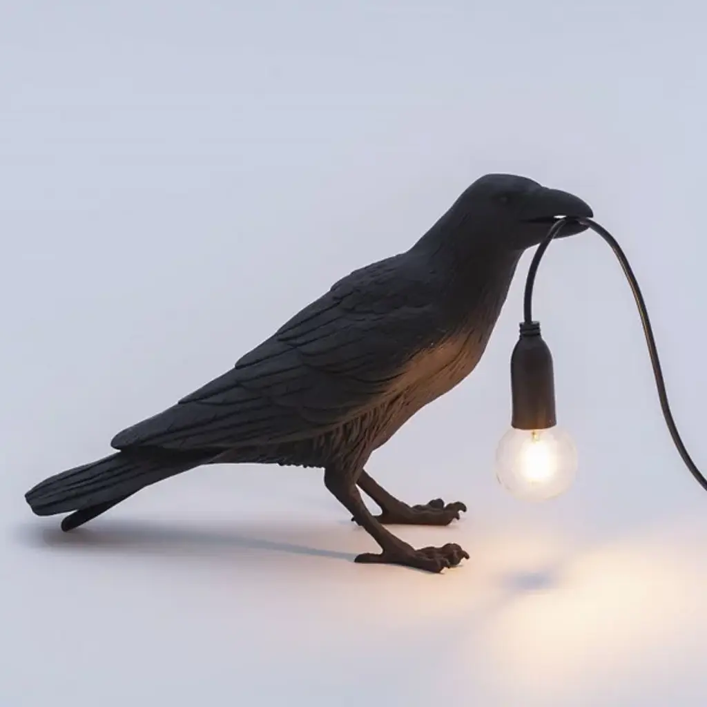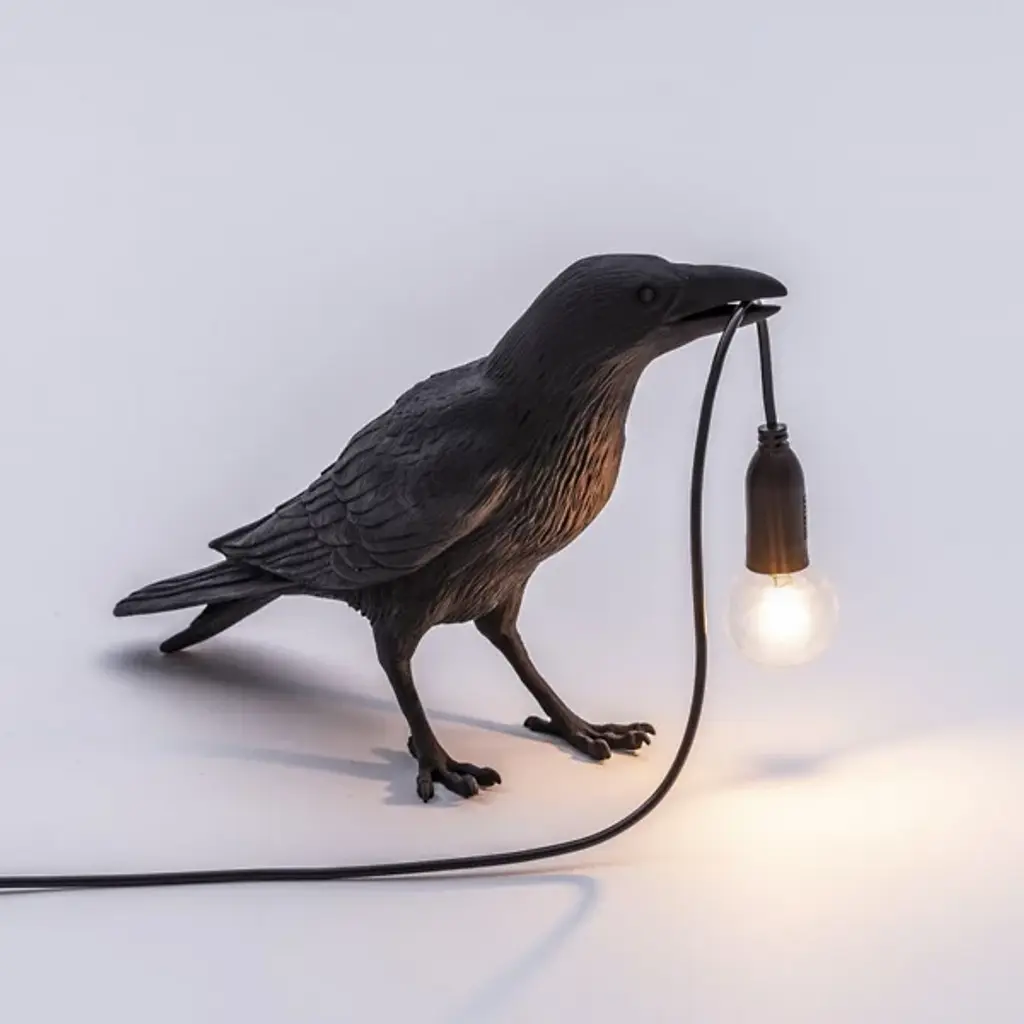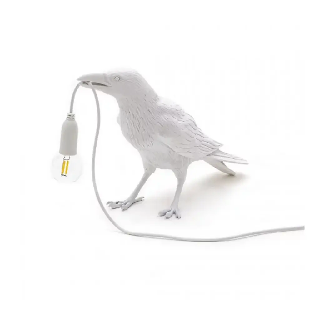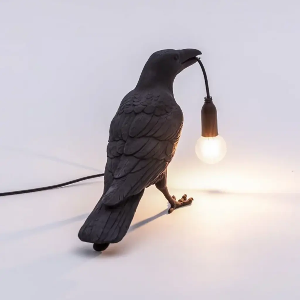 Add a curious and helpful raven to the décor of the outside of your home with the Bird Outdoor Table Lamp from Seletti. Known for their intelligence, this piece features a detailed silhouette of a raven made entirely of resin. Designed by Marcantonio Raimondi Malerba as a look into the relationship between animals and humans, it clutches the cord of the single bulb in its gentle beak, allowing the light to spread in a full and even manner.