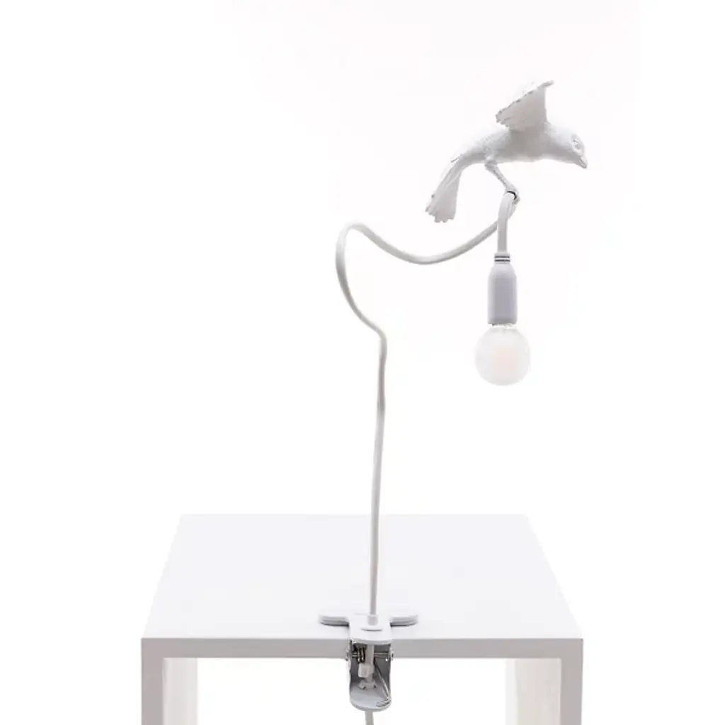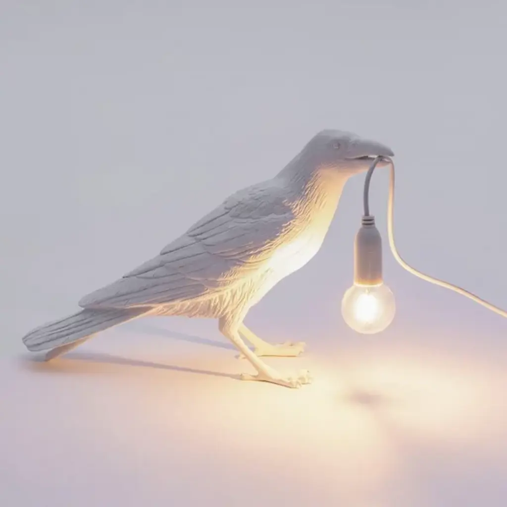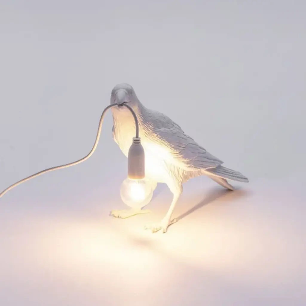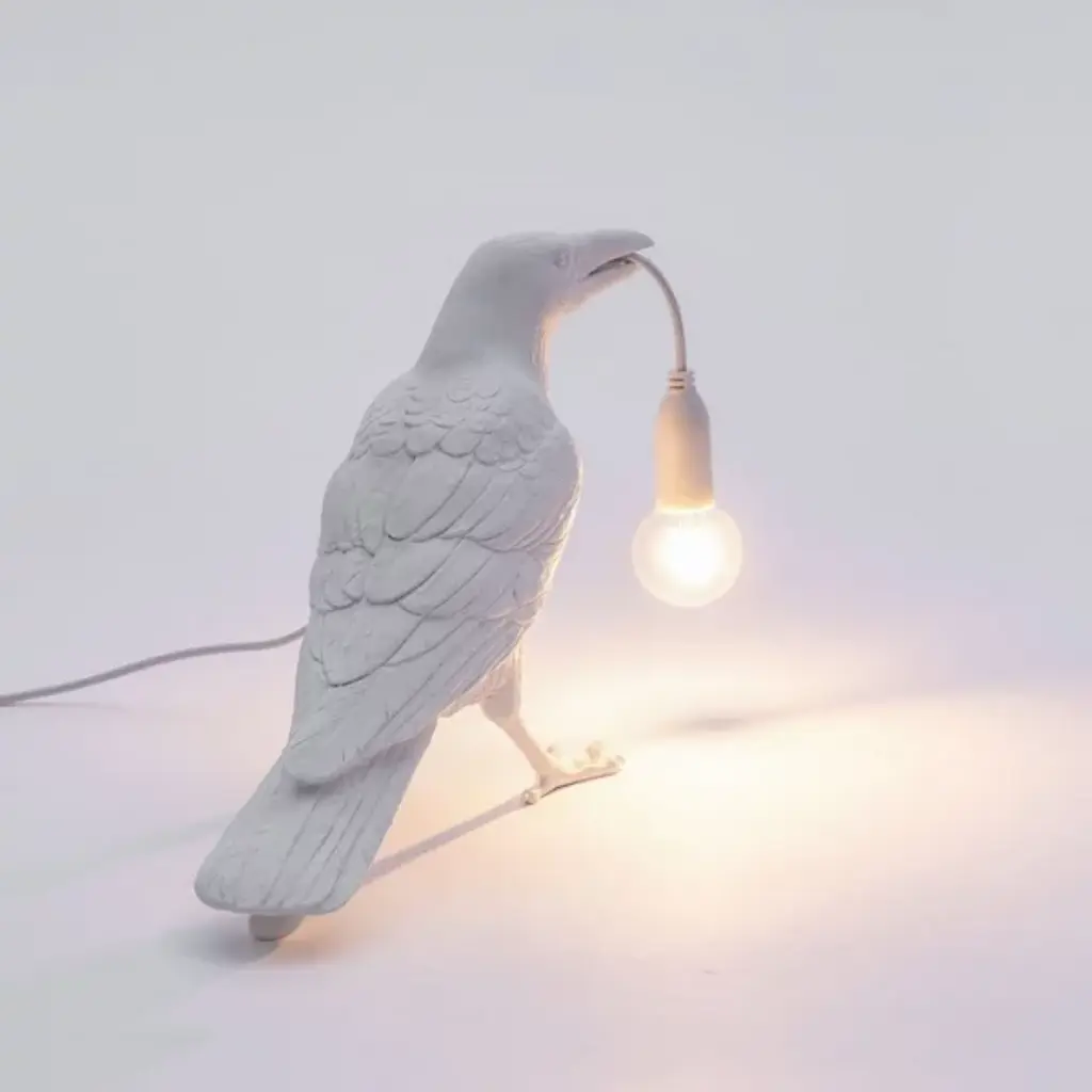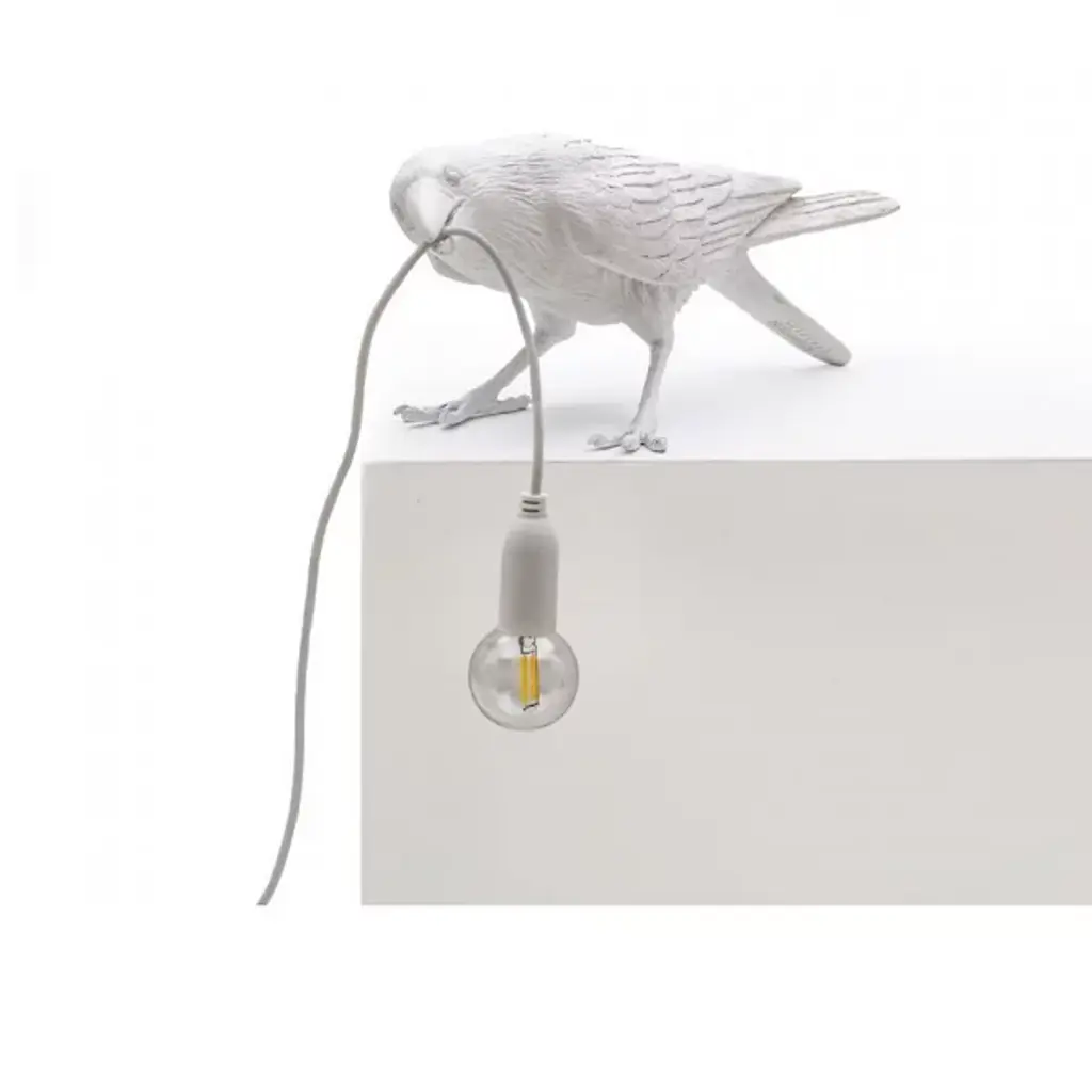 Add a curious and helpful raven to the décor of the outside of your home with the Bird Outdoor Table Lamp from Seletti. Known for their intelligence, this piece features a detailed silhouette of a raven made entirely of resin. Designed by Marcantonio Raimondi Malerba as a look into the relationship between animals and humans, it clutches the cord of the single bulb in its gentle beak, allowing the light to spread in a full and even manner.
