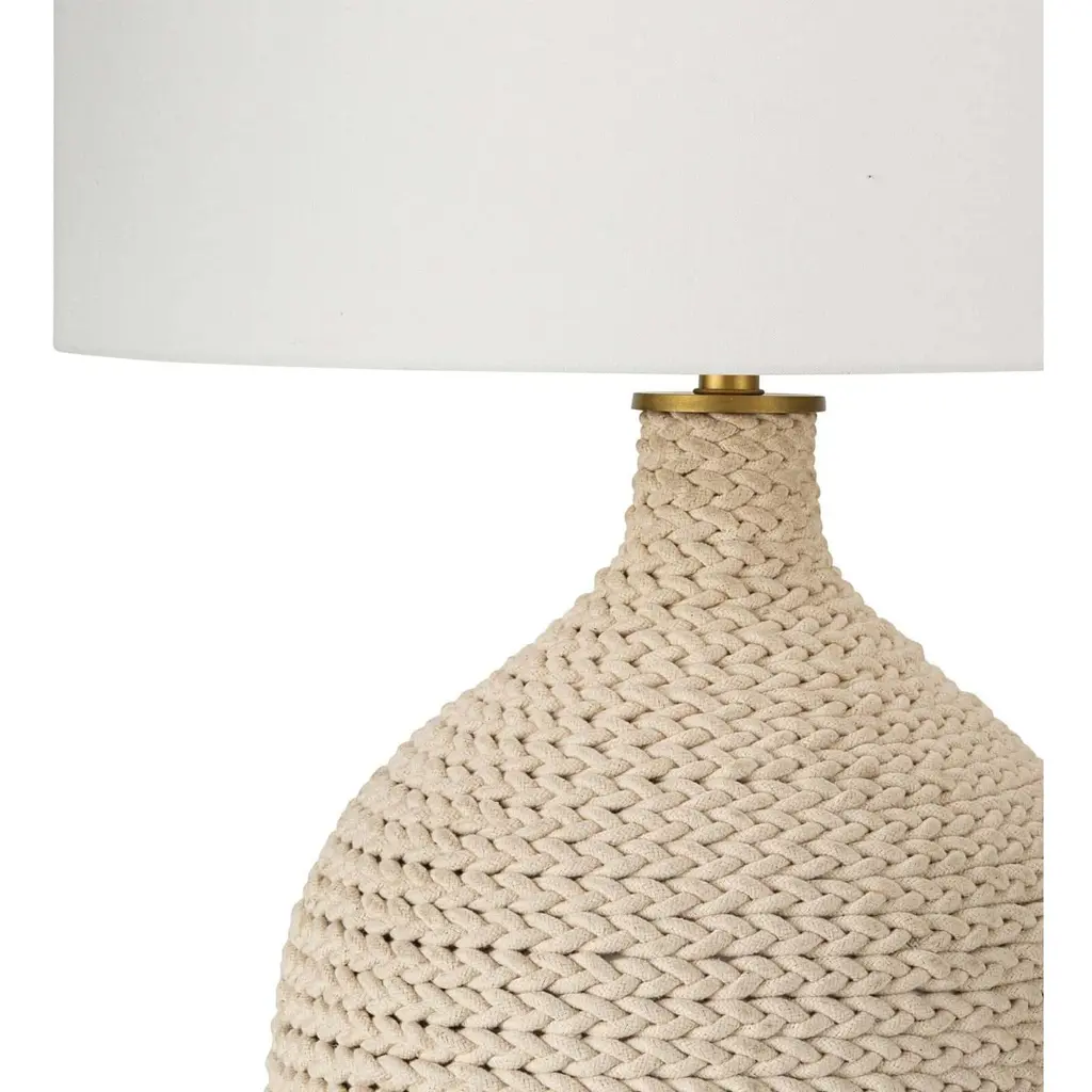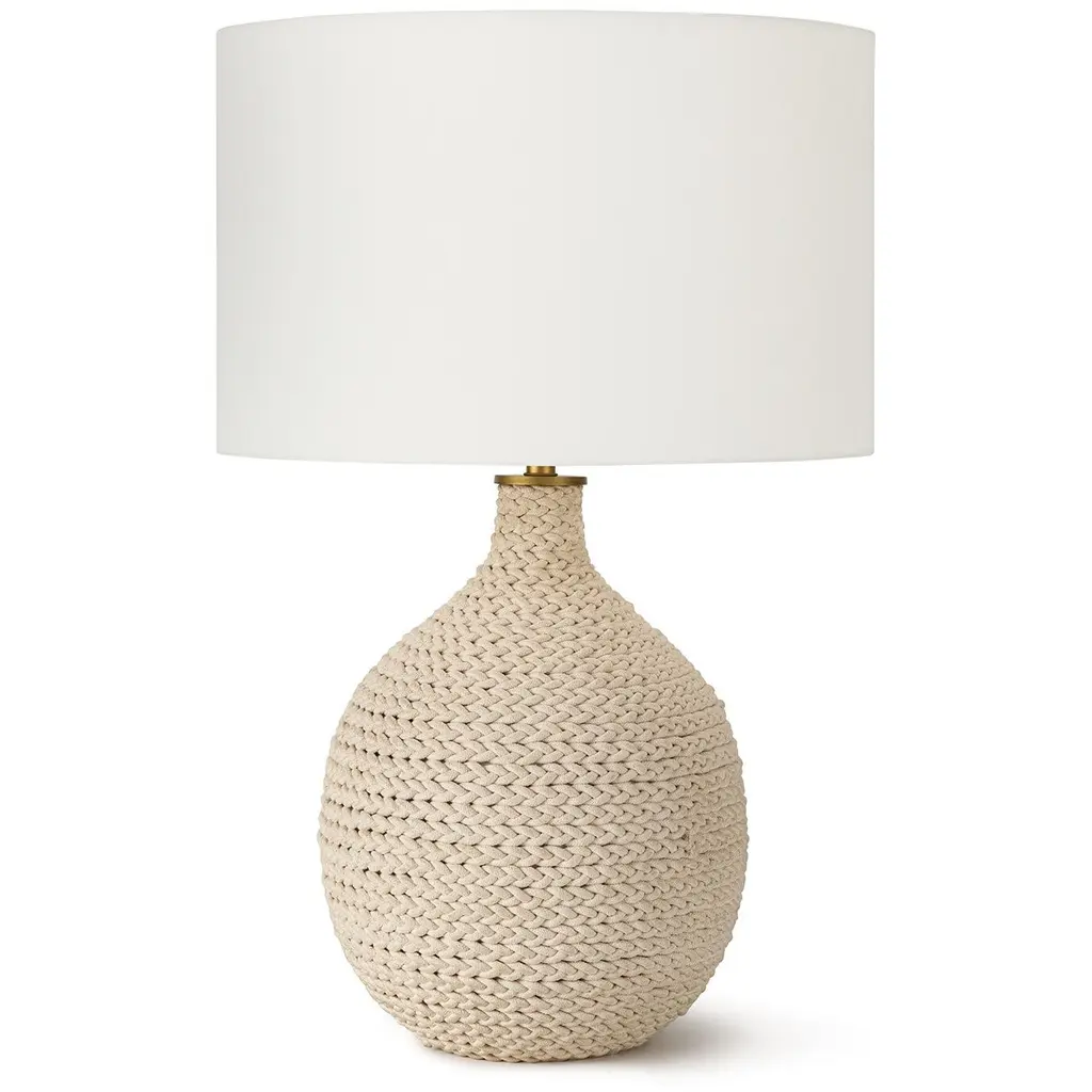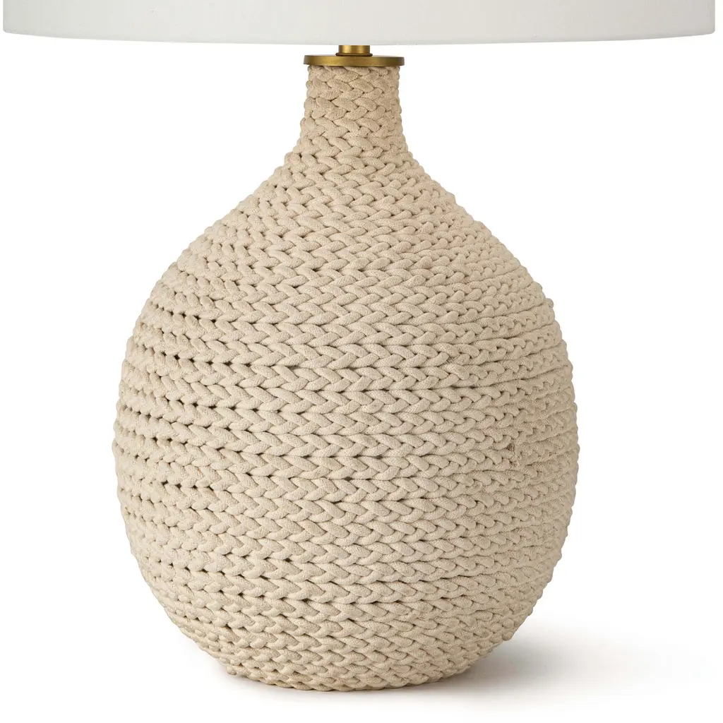 With nautical charm and modern sensibility, this table lamp features a large bulb-shaped body, which is hand wrapped with rope. This lamp would bring a modern-organic or coastal feel to any living or bedroom. Pair with other fresh and relaxed decor to create an inviting interior design.
