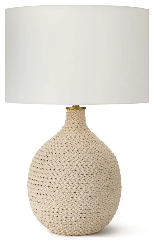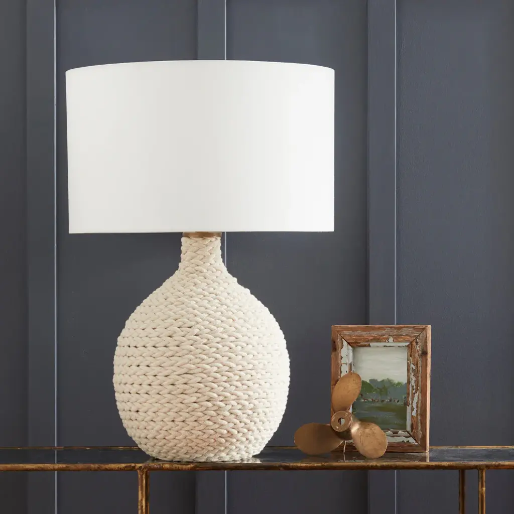 With nautical charm and modern sensibility, this table lamp features a large bulb shaped body, which is hand wrapped with rope. This lamp would bring a modern-organic or coastal feel to any living or bedroom. Pair with other fresh and relaxed decor to create inviting interior design.Bulb Type: A Type Medium Base (E26)Wattage: 3-Way 150 Watt MaxNumber of Bulbs Needed: 1Bulb Included: No
