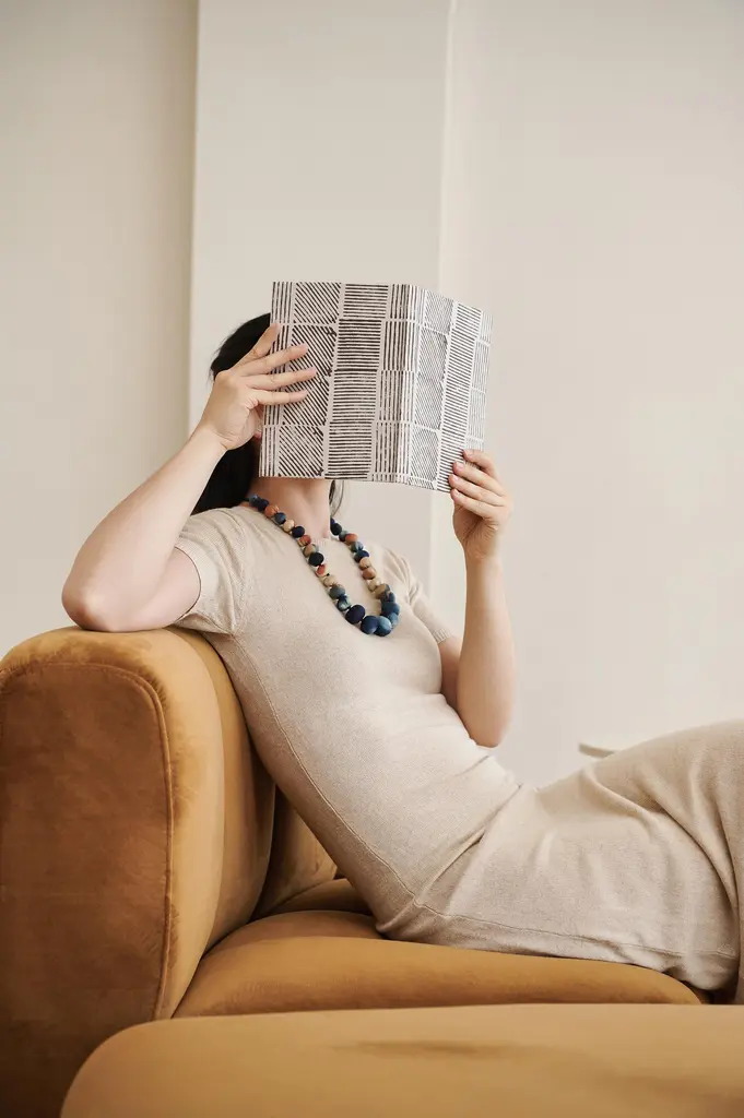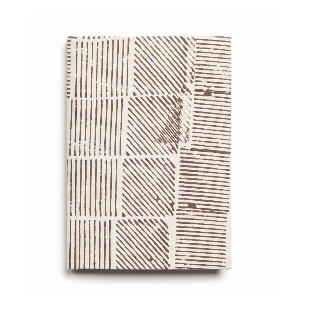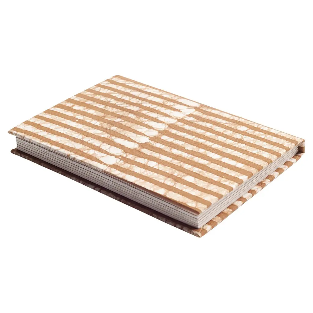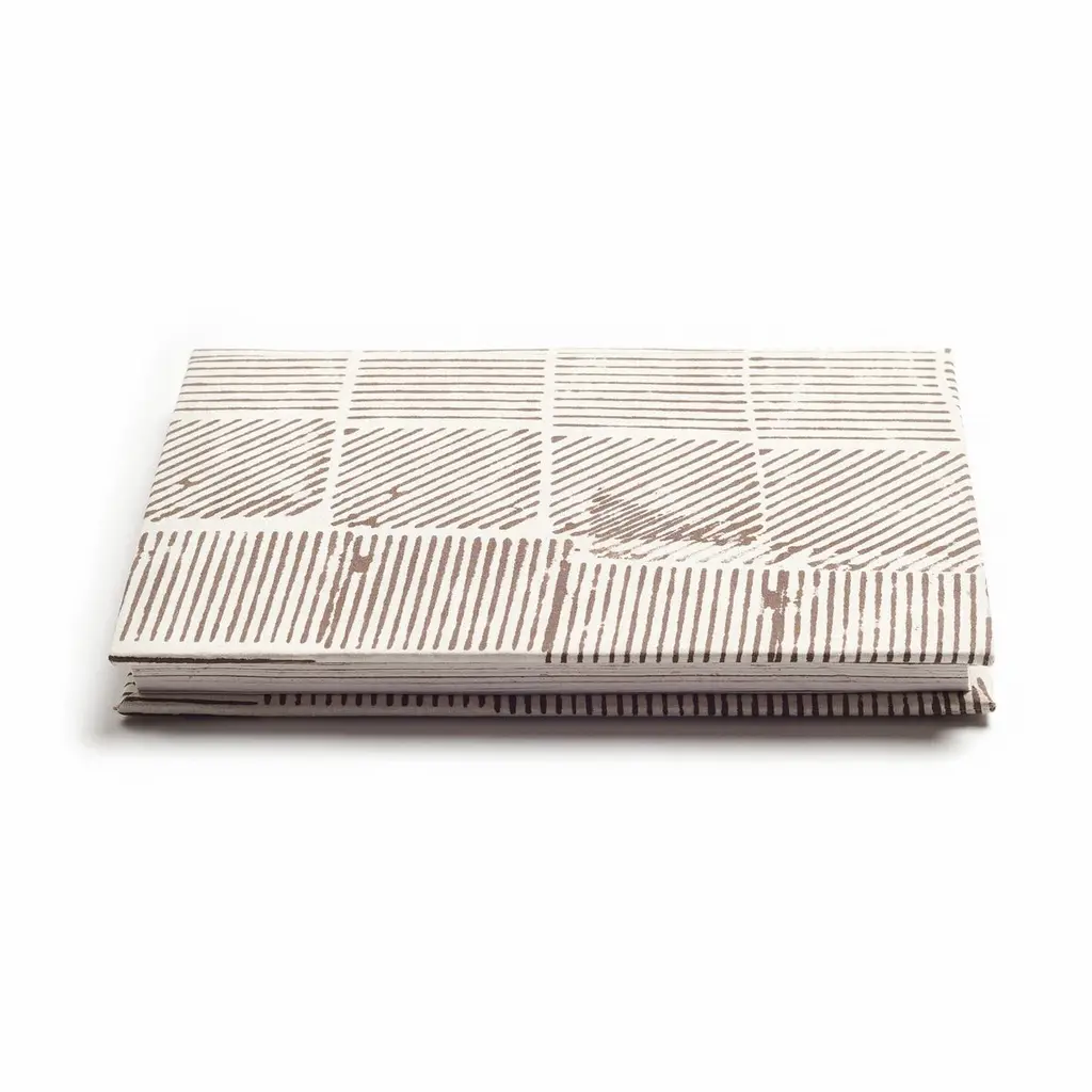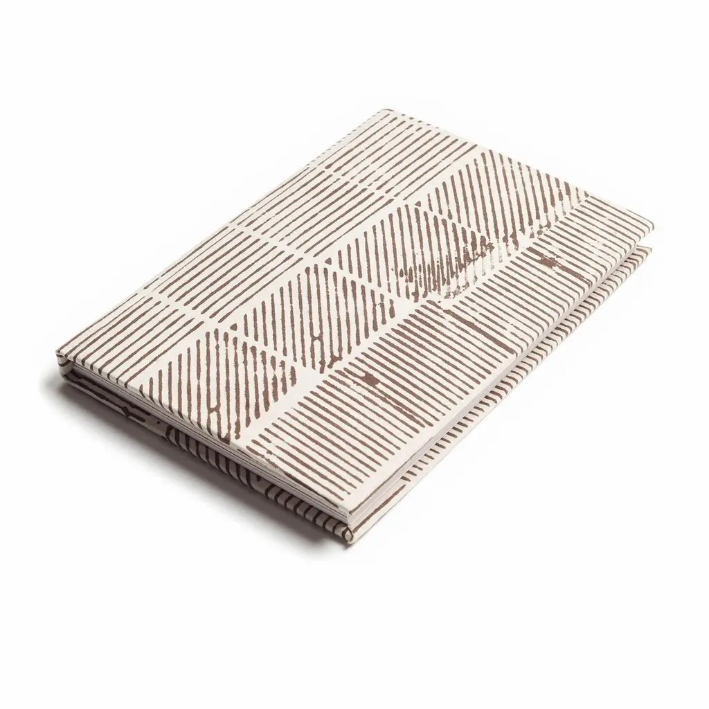 Good things do come in small packages. Variously’s exclusive design series of 100 page journals bring circularity in design and zero waste production together. Bistre Journal is completely cut and stitched by artisans in small batches only. A perfect sustainable purchase for self, creatives & loved ones to bring back journaling, taking notes, sketching and personalizing self expressions.Hand Made Paper Material : 100% wood free, these journals are ethically handcrafted by differently abled artisans in India. Zero Waste : Using only handmade paper from cotton fibre, tea fibre, elephant poop , carrot leaf, coffee husk with banana fibre dividers. Cover : Custom designed cotton covers use artisanal techniques like shibori, wax block printing , wood clamp dyeing carefully made in small batches using 100% natural dyes. Size: 6"X8.75" Color: Soot Black on White base Artisan base: Ethically and responsibly handwoven by artisans in India