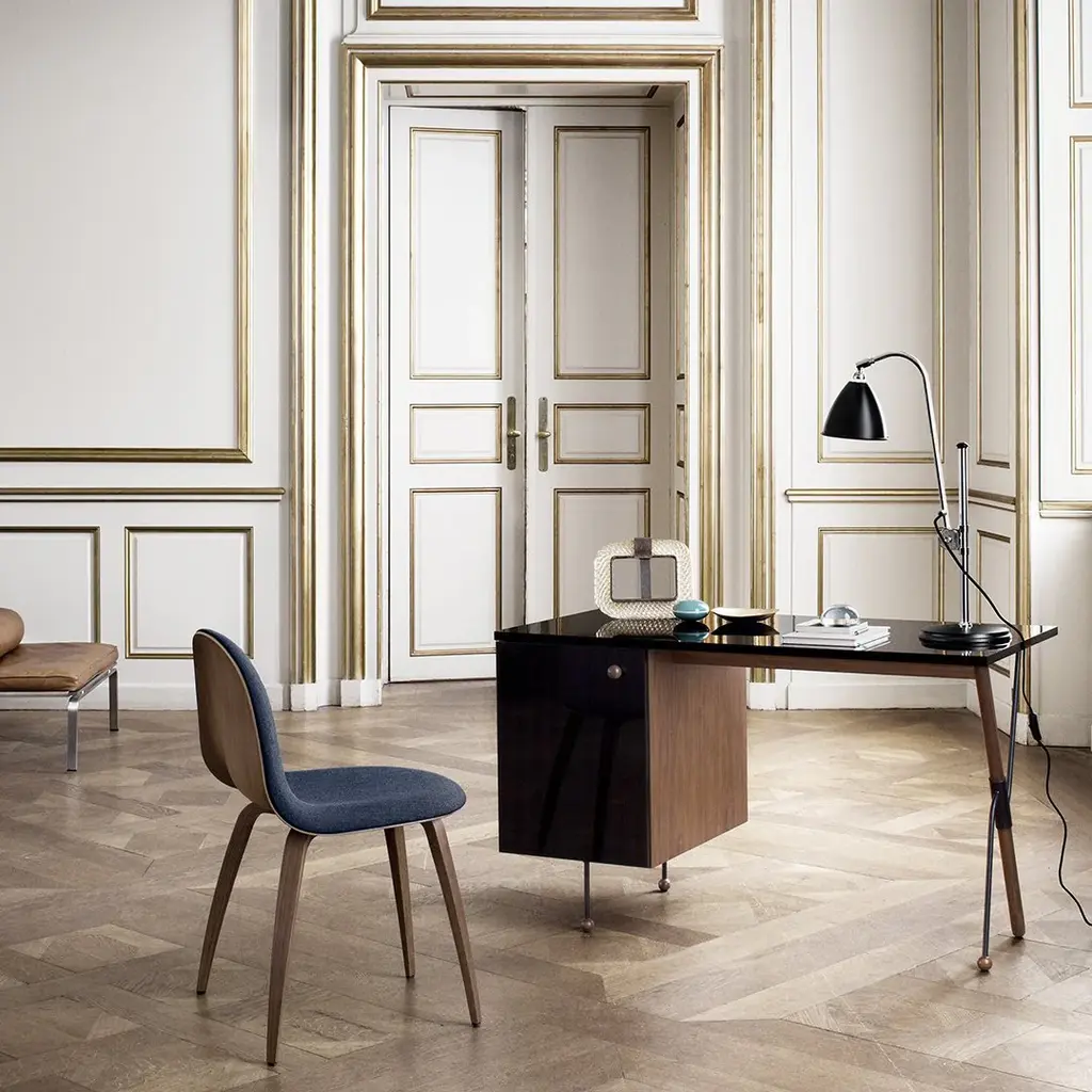 Designed by Robert Dudley Best in 1930, the Bestlite BL1 Table Lamp is a coveted design worldwide with strong references to Bauhaus. Winston Churchill, former Prime Minister of Great Britain, personally chose the Bestlite BL1 Table Lamp for his desk in the Whitehall and history records that Churchill even took the lamp with him on his countless trips around the world. This was the big breakthrough for the Bestlite, which has made it a design classic today. The minimalistic yet distinctive design makes it the perfect fit for any home office, workspace, creative corner or even as the lighting at your bedside table or in the living room. The Bestlite design stays close to its industrial roots and true to its original design. Bestlite is held in permanent collections at both the Victoria & Albert Museum and the Design Museum in London. Loved by architects, designers and design aficionados throughout its long history, today, Bestlite has become a contemporary classic. The height is adjustable and the lamp can be tilted 90 degrees from horizontal to vertical, the shade can also be rotated 360 degrees. The textile cord matches the shade on chrome models, and is golden on brass models. Switch on cord.
