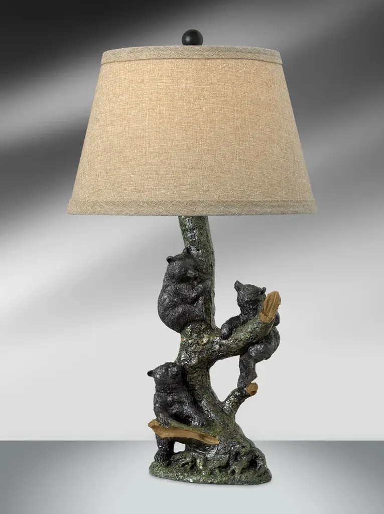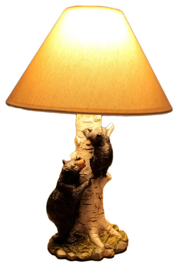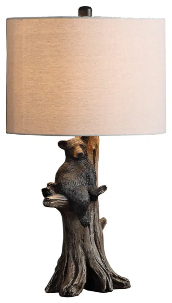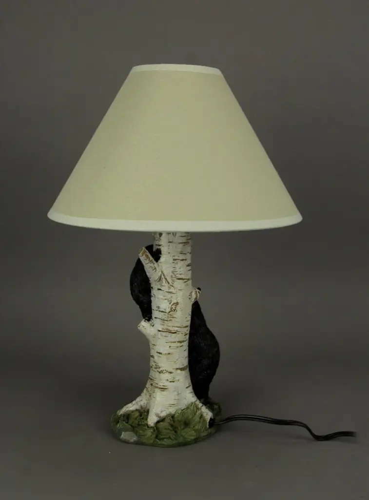 OVERALL SIZE - 17 Inches High, 6.25 Inches Long, 5.25 Inches WideCreatively Cast in Resin in a Black and White Hand Painted Finish that Takes On a Lifelike Look Featuring a Pair of Black Bears Climbing a White Birch TreeTopped with a 6.75 inch High, 12 inch Diameter Beige Hardback ShadeUL Approved and Accepts (1) Type A Bulb Up to 45 Watts (not included)Brings a Warm Glow and a Rustic Touch of Wildlife to Any Home Decor SettingA black bear watches close as she teaches her cub to climb a white birch tree. Creatively in resin in a beautifully sculpted life-like finish, this lamp will add a bit of wilderness fun to any room. The hand painted finish brings out in incredible detail the realistic features of the bears, tree, and surrounding greenery. The 17 inch tall, 6.25 inch long, 5.25 inch wide lamp includes a beige hardback shade to complete the rustic look. It''s UL approved and accepts a Type A bulb up to 45 watts, not included. The lamp casts a lovely light and brings a warm inviting glow and a rustic touch of wildlife to any home decor setting.