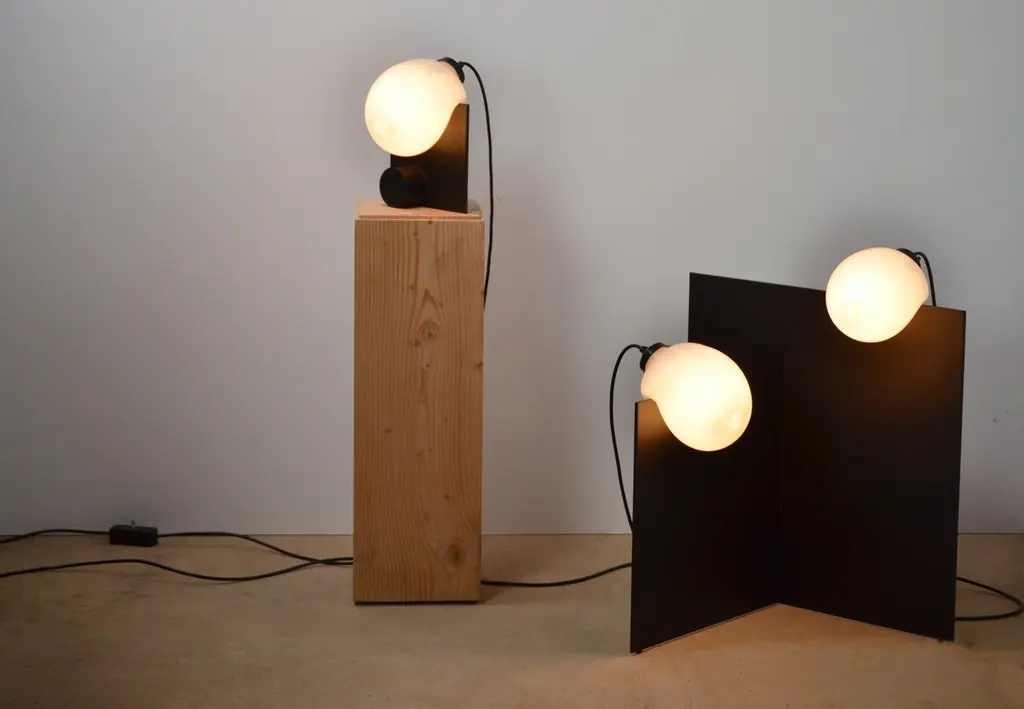 Black Bloop table lamp by Nick PourfardDimensions: D 10 x W 20.5 x H 20.5 cm.Materials: metal, glass.Different finishes available. All our lamps can be wired according to each country. If sold to the USA it will be wired for the USA for instance.Hand blown glass lights that drape over handmade metal bases.The bulb’s own form helps balance and lock in safely on the base without hardware.Nicholas Bijan Pourfard is a furniture and lighting designer based in Southern California. Pourfard is completely self-taught in woodworking and machining, though he double-majored in industrial design and business marketing at San Francisco State University. He’s been building furniture and lighting for himself but only started promoting it this past year. Furniture design has its parameters, of course, but it’s allowed Pourfard to contrast the precision of measurement and the patterns of math with something more loose — organic shapes offset by angularity, like his Bloop lighting, where plump handblown glass blobs glow and rest on a base of geometric steel. There’s something companionable, a kind of friendly quality, to his pieces, whether it’s the warmth of his ceramic Mushroom lamps or his Box chairs, which despite the rigor of their form, still invite you to sit.