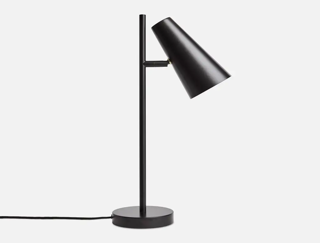 Black Cono table lamp by Benny Frandsen.Materials: Metal.Dimensions: D 15.5 x H 50 cm.Benny Frandsen is a renowned and experienced danish designer and founder of the lighting company frandsen, which has designed, manufactured and marketed lampssince 1968. Since the very beginning, Benny Frandsen has been passionate about sharing his predilection for classic designs, made of high-quality materials. His flairfor scandinavian aesthetics has resulted in numerous international lighting design rewards during the years.WOUDThe founders, Mia and Torben Koed, decided to put their 30 years of experience into a new project. It was time for a change and a new challenge. The challenge was to build an ambitious design brand from the ground up with high-quality materials and great attention to the little details. With a drive to create new originals, the WOUD collection is founded upon the idea to look ahead instead of looking back and share the love for honest design. Therefore, we are eager to discover and develop new ideas whether it being in form, function or choice of material. All our lamps can be wired according to each country. If sold to the USA it will be wired for the USA for instance.