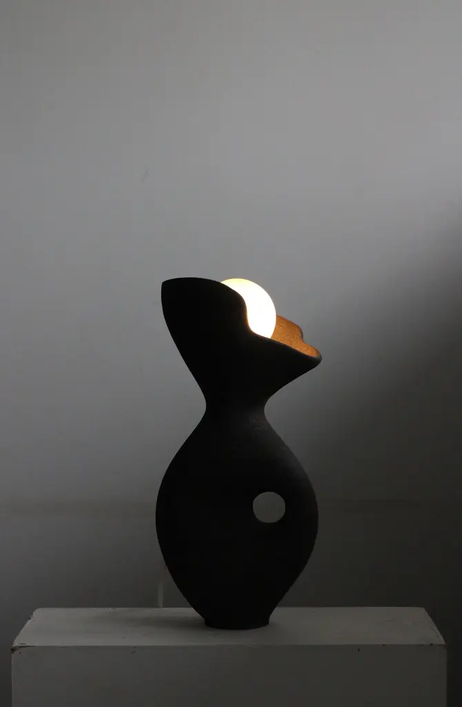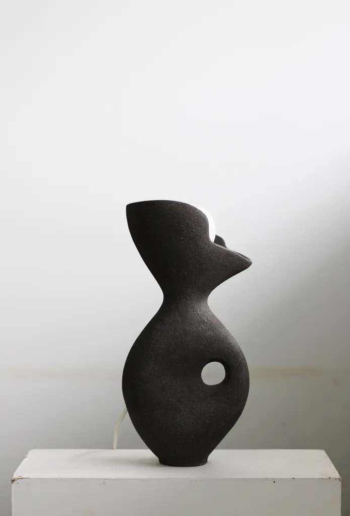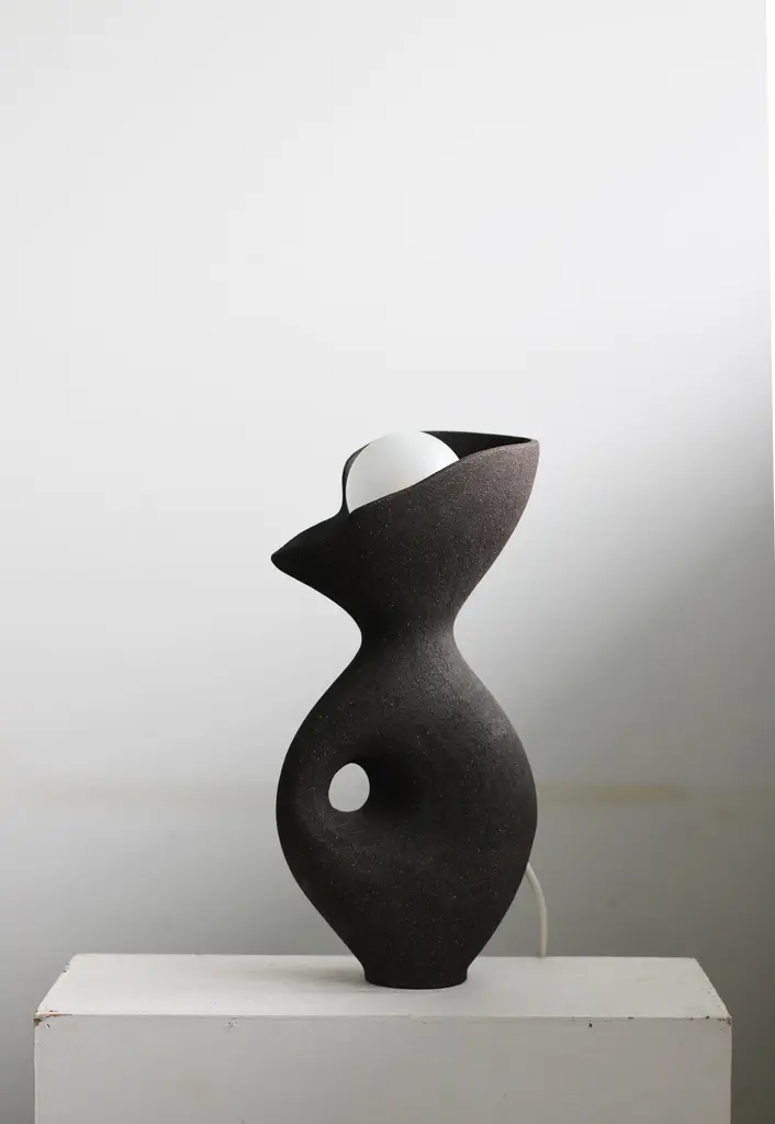 Black Exo Lamp by Abid JavedDimensions: W 20 x 32 H cm (Dimensions are variable)Materials: Stoneware ceramic, Brass.Multiple clay color and size options.Coiled hollow form with a non-glazed ceramic surface. Bulb optional. All our lamps can be wired according to each country. If sold to the USA it will be wired for the USA for instance.Shaded lamp base - adopted from Pleomorph form undergoing exocytosis inside a cell.Abid Javed is a ceramic artist, creating collectible ‘molecular objects’, using clay. With a background in Molecular Biology, the collections bring in the unseen world to the forefront. Subject matters explored include cells-molecules, together with Arabic script and geometry. All objects are hand-built, encompassing pinch, coil, and slab methods. Working in a range of clay, each piece is carefully crafted to bring a piece alive - emphasis on form and the clay-body. Therefore, each piece is a labor of love. The exploration continues through a series of sculptures and vessels.