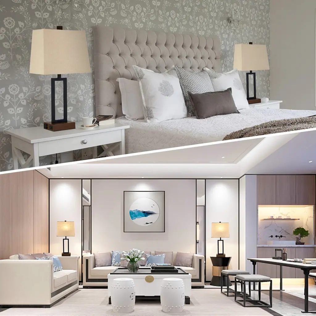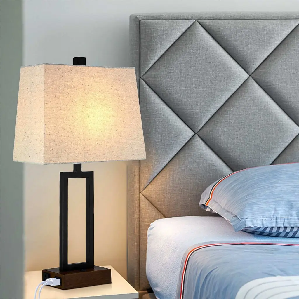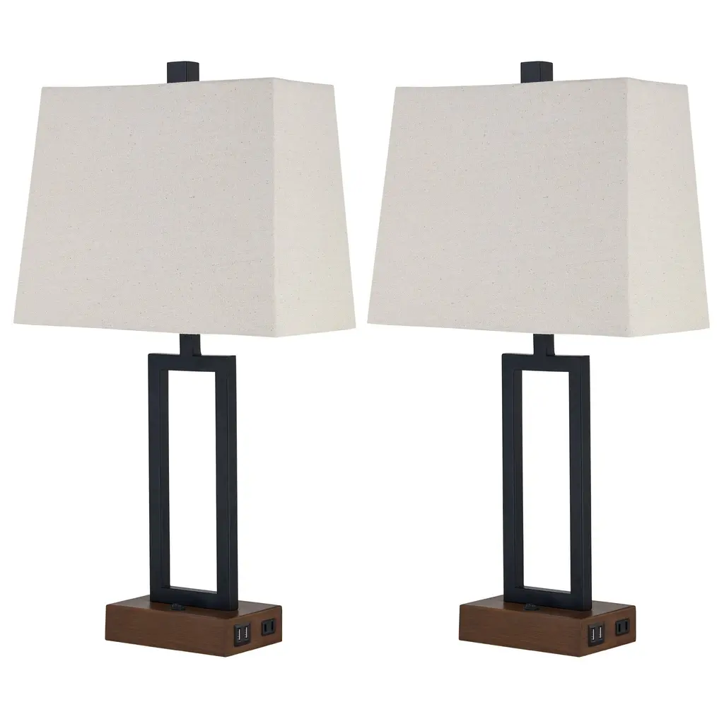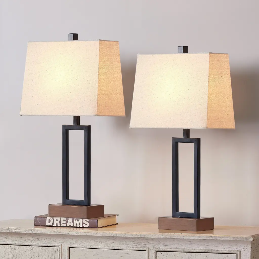 The table lamps boast a modern design that effortlessly complements various interior aesthetics. Crafted with meticulous attention to detail, their metal base provides stability and durability, ensuring these lamps will grace your space for years to come. These lamps are perfectly sized to illuminate your surroundings without overpowering your decor. The balanced proportions make them suitable for bedside tables, desks, or any area where both light and aesthetics matter. Embrace the modern age of convenience with the built-in dual USB charging ports. Charge your devices directly from the lamps, eliminating the need for multiple outlets and freeing up your power sources for other essentials. The table lamps come complete with light bulbs, sparing you the hassle of finding the right fit. Each lamp features an E26 bulb base that accommodates the included bulbs, emitting a warm and inviting glow that enhances the ambiance of your space. With a maximum wattage support of 25 watts and an AC outlet, these lamps offer both a soft, ambient light and efficient energy consumption. Illuminate your room with the perfect level of brightness for relaxation, work, or any activity. Choose the lighting that best suits your needs, whether you prefer warm-toned ambiance or vibrant, focused illumination.Overview of features: