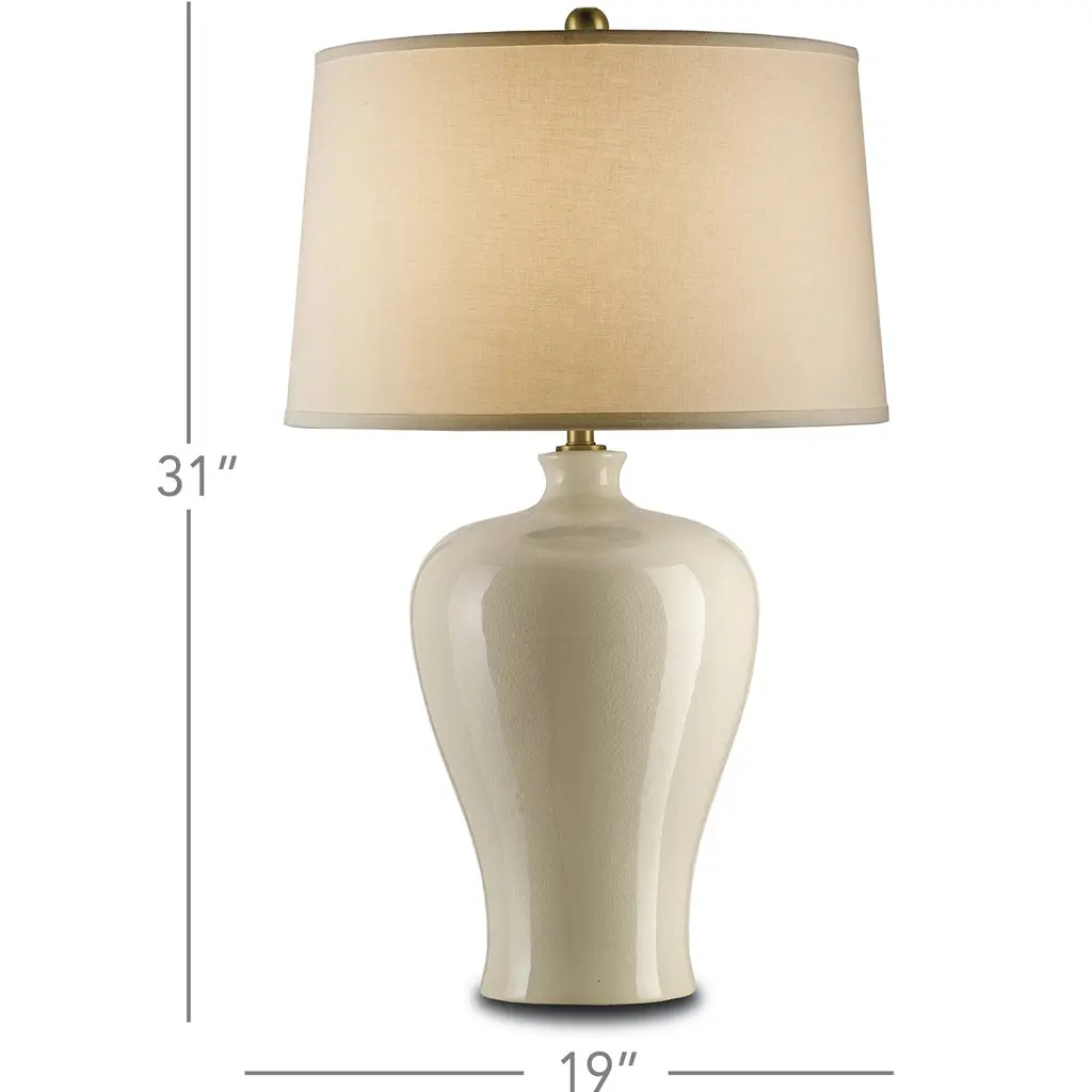 Tweaked for greater sophistication, the slim, slightly fluted bottom of the traditional ginger-jar shape of the Blaise Table Lamp makes this a pleasing decorative accent for any number of styles. The porcelain table lamp is fitted with an off-white linen shade and treated to a cream crackle finish. Can’t you see it flanking a beautiful ivory headboard in a tasteful bedroom or sitting atop a stack of coffee-table books in a gracious living room?