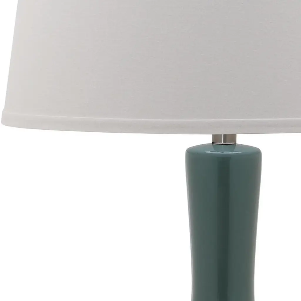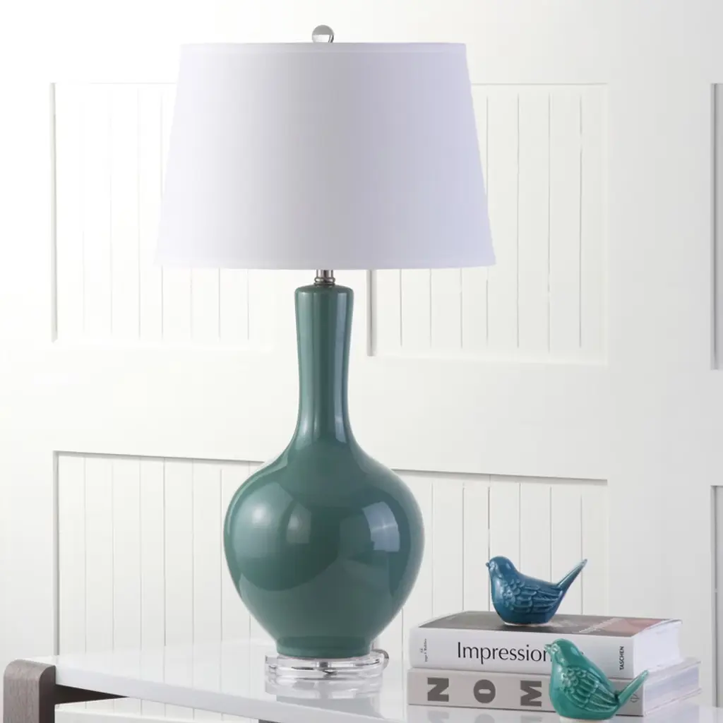 Illuminate your space with the Blanche Gourd Table Lamp in teal, a piece crafted to elevate any room. Its ceramic finish provides a sleek touch that complements diverse decor styles. The deep teal hue brings a calming and sophisticated tone, making it ideal for your living area, bedroom, or office. With its timeless gourd shape, this lamp seamlessly balances form and function. Whether you need focused light for reading or a warm glow for ambience, this lamp delivers both with elegance. Bask in the serene atmosphere it creates as it captures attention without overpowering your decor. Add this beautiful piece to your home and enjoy its effortless charm and presence.