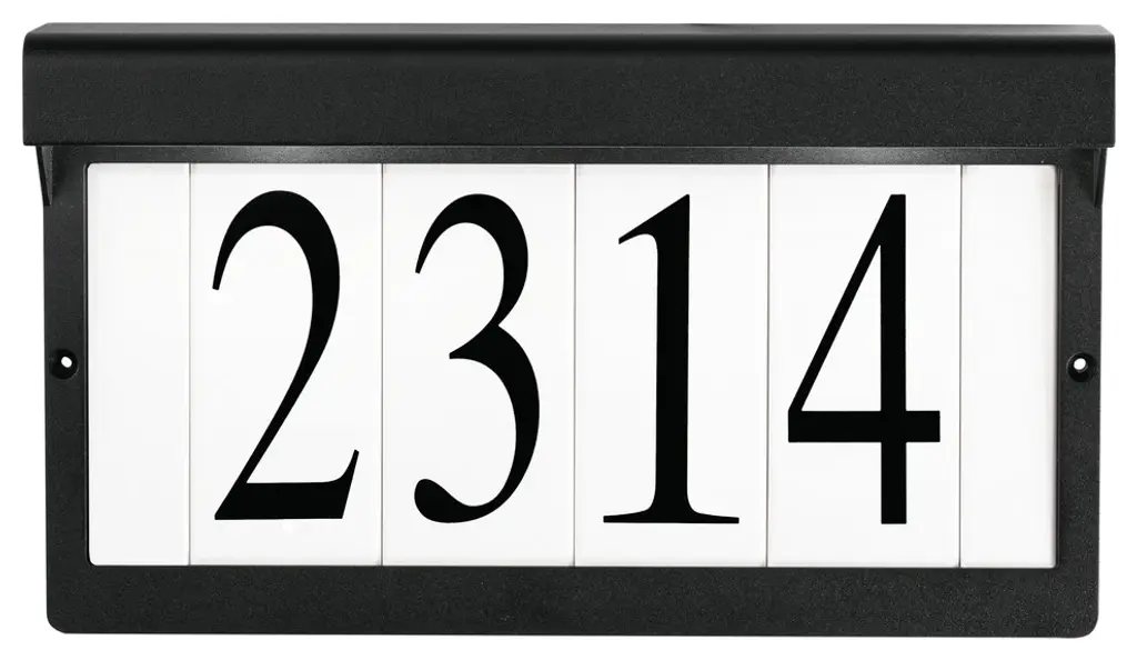 Bulbs IncludedIndividual house number tiles are sold separately. Making it easy for guests, deliveries and emergency services to find you, day or night, is important. The Ambiance Lighting System Address Light reduces the guesswork. Both decorative and functional, this address light complements the curb appeal of your home while enhancing safety and security. Maximum visibility by day and night. Increases security, speeds emergency response and deliveries.Fits big 4" numbers constructed of high impact polycarbonate for clear, precise readability from 100 feet away.Supplied with two Xenon high intensity light bulbs, that generate over 16 lumens of pure white light and consume only 4.5 watts.Over 100,000 hours lamp life at 16 volts.Easy to install, may connect to door bell transformer (16v max.) using supplied terminal block.Innovative design deflects rain and debris.Polished aluminum reflector maximizes light output.Long lasting cast aluminum construction with polyester powdercoat paint finish protects against UV fading and resists cracking by garden chemicals and acid rain.Refer to address tile part #''s: 90610-68: 0, 90611-68: 1, 90612-68: 2, 90613-68: 3, 90614-68: 4, 90615-68: 5, 90616-68: 6, 90617-68: 7, 90618-68: 8, 90616-68: 9, 90619-68: blank, 90621-68: 2 small blank tiles.
