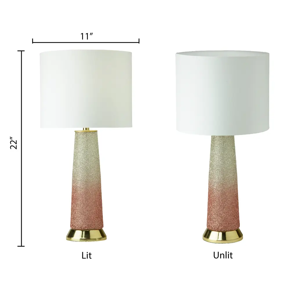 Bliss River Of Goods Ombre Pink Glass And Metal 22-Inch Table Lamp - 11" X 11" X 22" - Pink/silver/gold/white