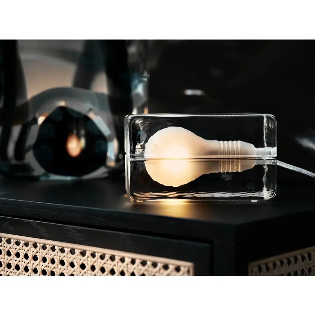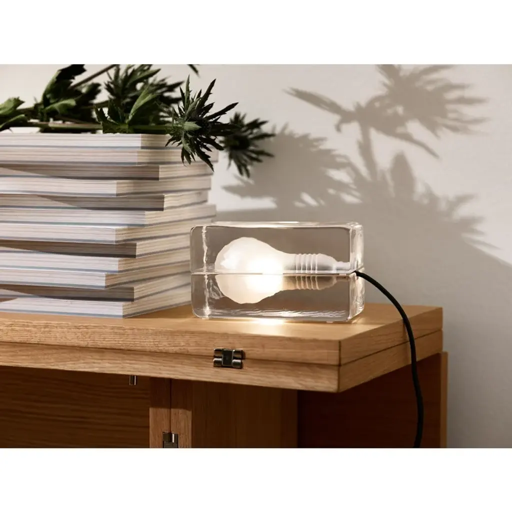 In Design House Stockholm’s Block Lamp the light is enclosed by two glass blocks that feature a matt, sandblasted bulb shape. Each part of the lamp is hand cast and undergoes an extremely long cooling process to avoid cracking later on if exposed to strong temperature changes. Harri Koskinen designed the Block Lamp in 1996, and it became an immediate success. The light has been part of MoMA’s permanent collection since 2000.