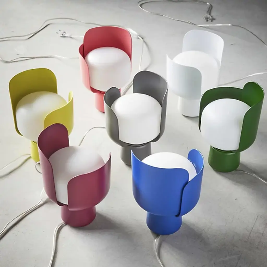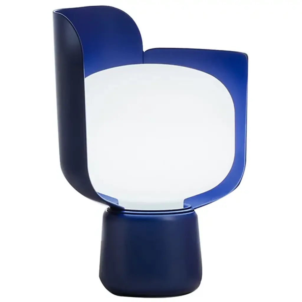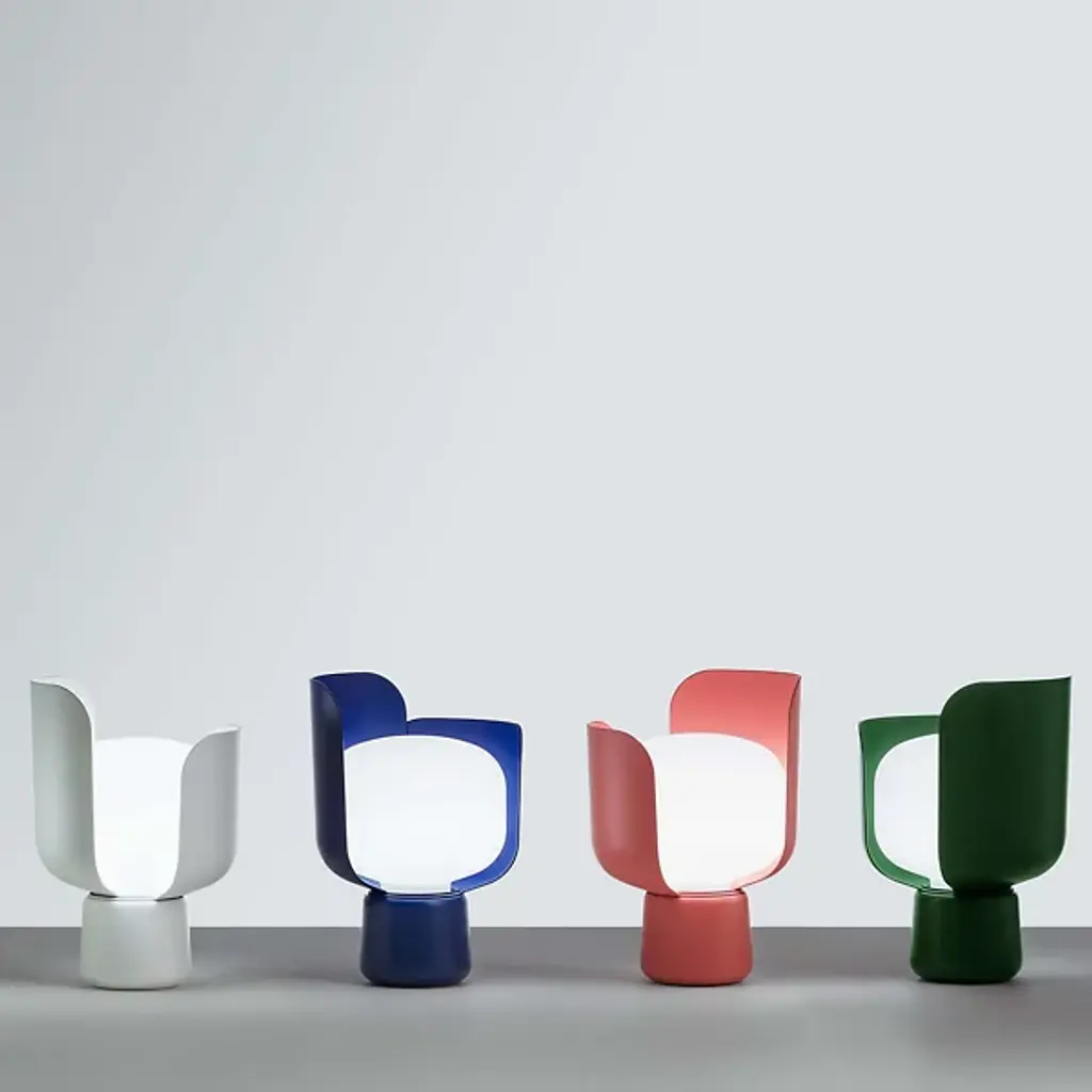 Bring a cheerful quality to interior décor with the Blom Table Lamp by FontanaArte. Designed by Andreas Engesvik in 2013, this fixture takes its name from the Norwegian word for flower and features two petal-shaped blades that extend from its tubular stem base to cradle a frosted polycarbonate diffuser. The petals can be shifted to strengthen its light and channel it toward the desired direction while adding a dynamic visual touch.