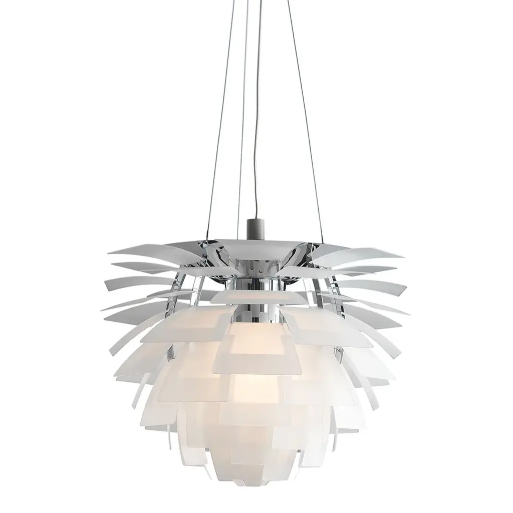 Bring a balanced, natural shape to your indoor spaces with the Bloom Chandelier from Zeev Lighting. This elegant transitional fixture starts with a disc ceiling mount that drops a round hub studded with small open sockets and metal pegs. These small pegs are then split down the middle to hold aluminum strips that curve out to form natural petal shapes, creating a flowering blossom accentuated by cleverly situated, partially obscured lamping.