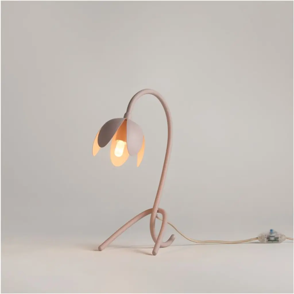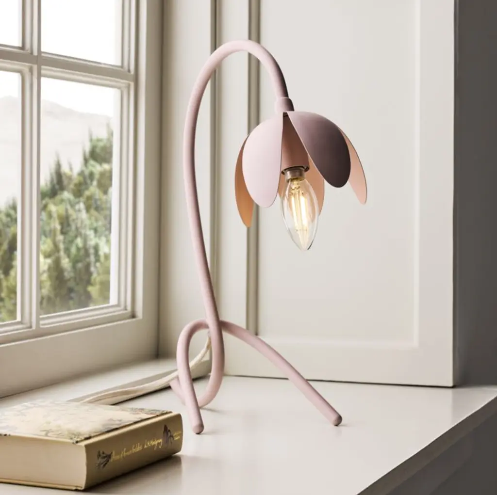 Brighten their space with a bloom that never wilts. Our metal flower-shaped Bloom table lamp is a cheerful statement piece, featuring a single curved steel stem with a dreamy, hushed violet powdercoat finish. Ideal for desks, nightstands or reading nooks, it adds a playful pop of color and a touch of garden magic to a kid's bedroom, nursery or playroom.