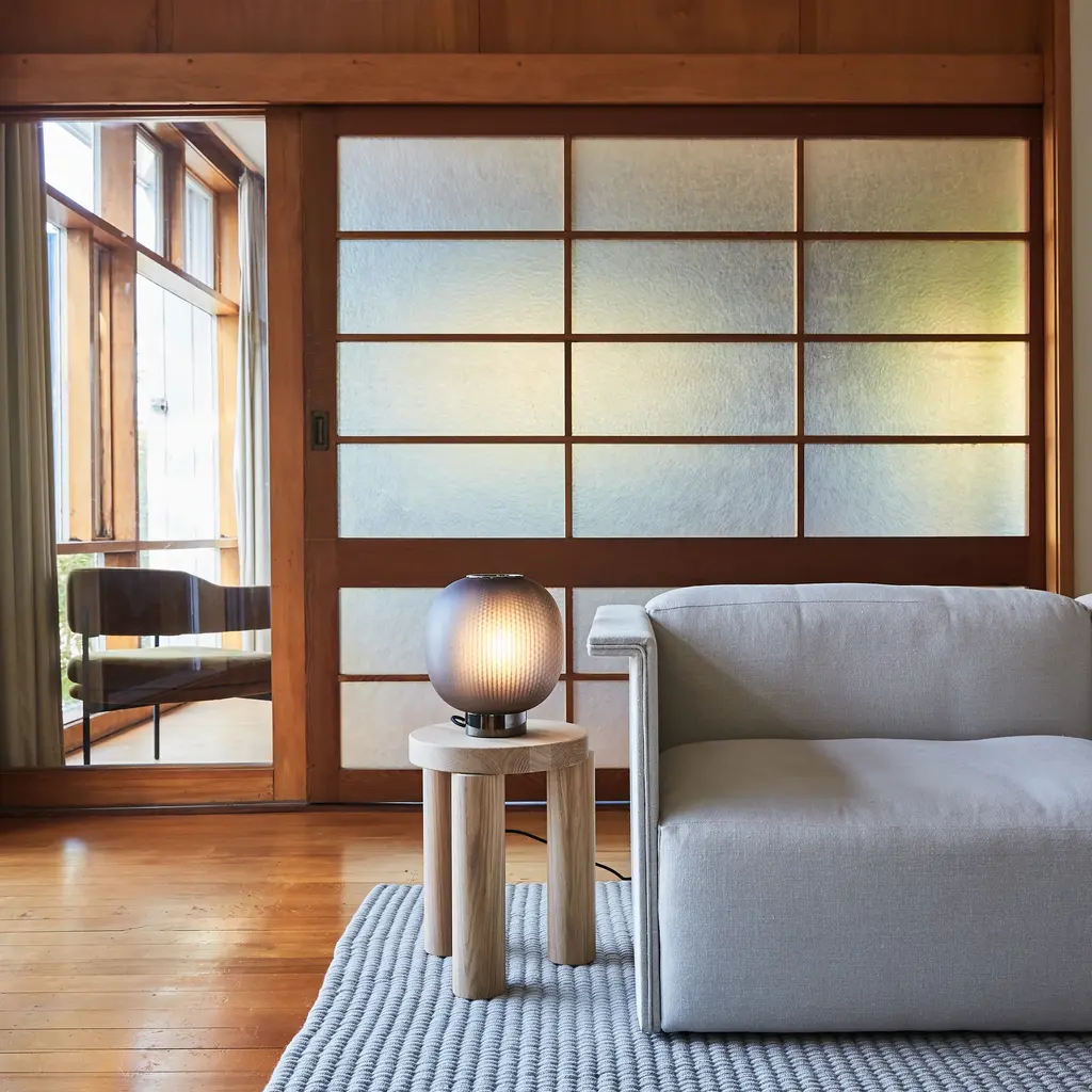 Illuminate your space with the elegant Bloom Table Lamp from Resident. Inspired by paper lanterns, its unique illuminated pattern adds a sophisticated touch. Its stainless steel base and frosted blown glass shade create a warm, consistent hue. Available in White or Black, it's a versatile and luxurious addition to any room. Highlights