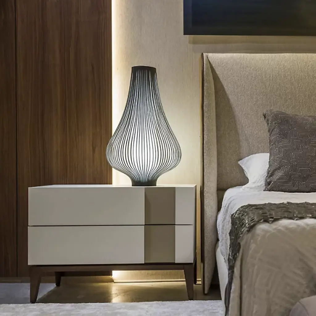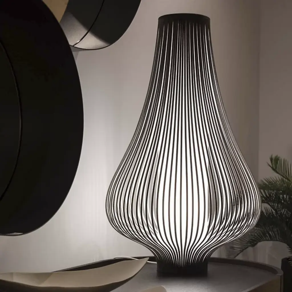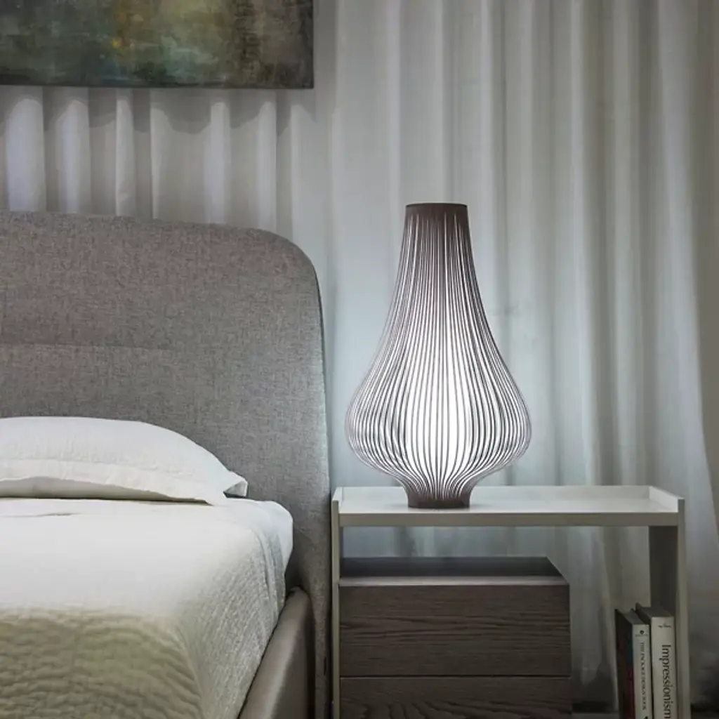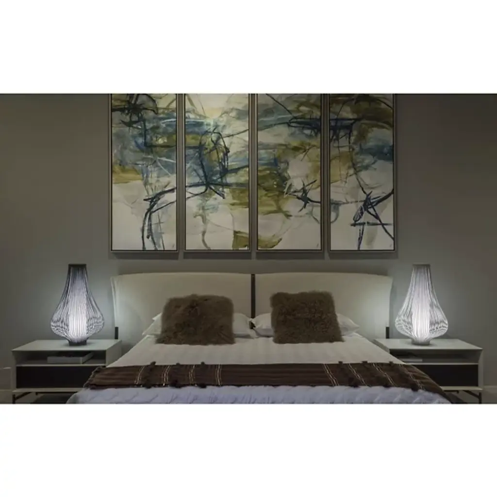 Handmade by artisans in Spain from high-quality materials, the Blossom Table Lamp is a piece of contemporary design presented by Uplight Group Essentials. It is equal parts artwork to interior lighting application, as the curved lines of the lamp’s silhouette are sculptural in feel, and each ridge of the bodice has been lined with French velvet. Light flows through each opening in the lamp to provide a pleasant ambient glow.