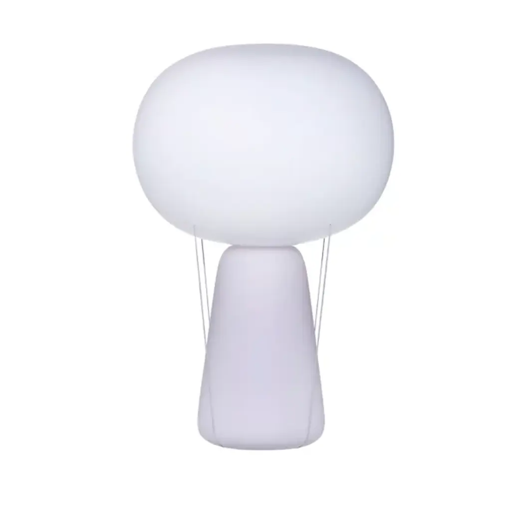 A balanced design inspired by the floating form of a hot air balloon, the Blow Table Lamp by Nude is a beautiful piece from Switzerland-born designer Tomas Kral. Equal parts functional and sculptural, the tapered, solid base of this table lamp is connected to a handmade, crystalline shade using simple rubber bands. The smooth, simple silhouette of this design is reminiscent of its inspiration with a minimal, whimsical feel that lends a soft, welcoming glow to surroundings.