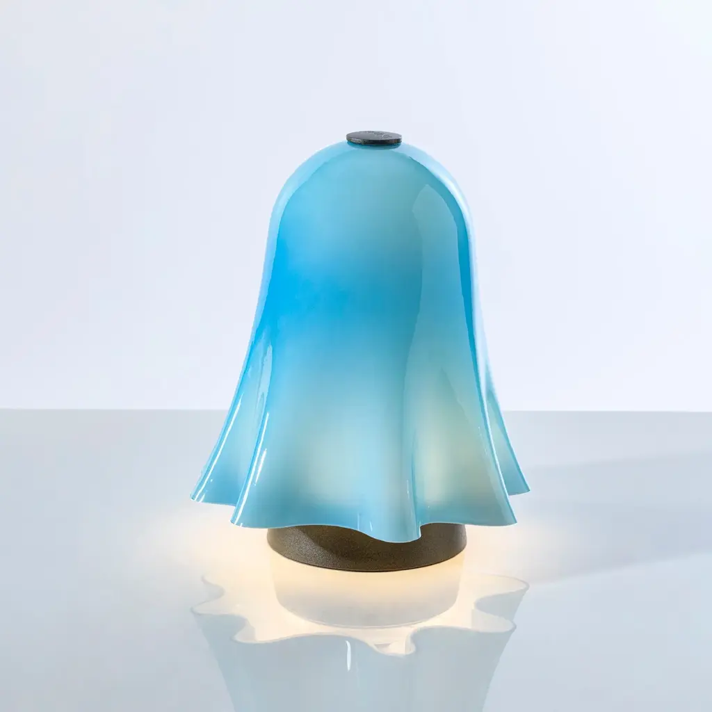 The expert glass processing gives this object a light movement, as if it were suspended in space; its iconic shape comes from an exclusive archive prototype and brings a playful touch to living spaces. The special relationship between light and matter that has always characterized VENINI glassworks returns in this lighting line, with table and floor proposals that suggestively rework the Opalini technique dating back to the 15th century. The shape recalls the iconic Fazzoletto vase by VENINI, designed in 1948, but is animated with a contemporary touch thanks to its portable use.