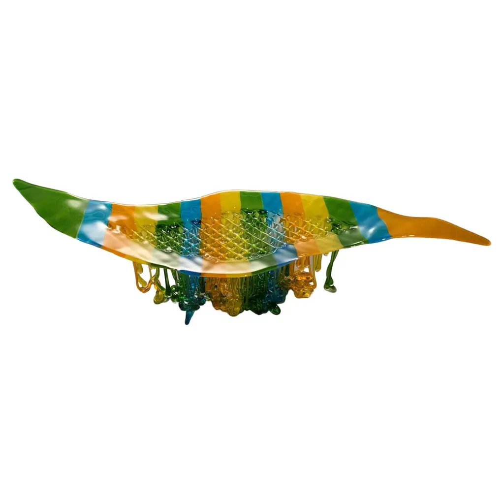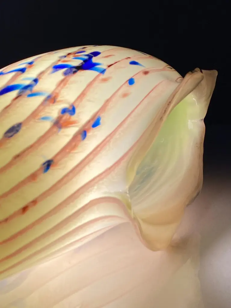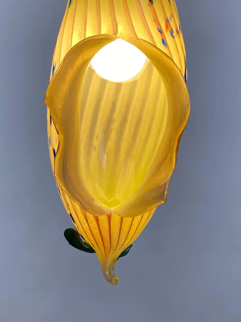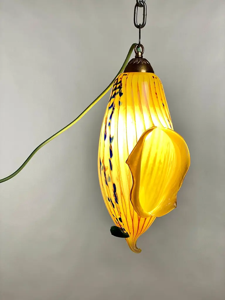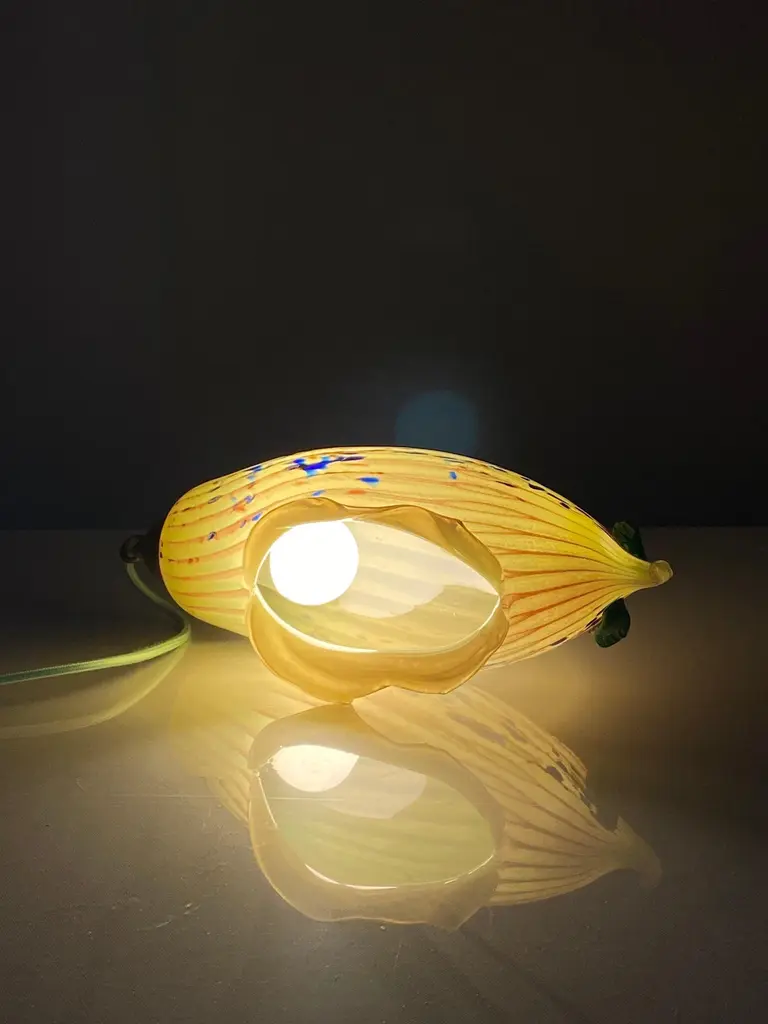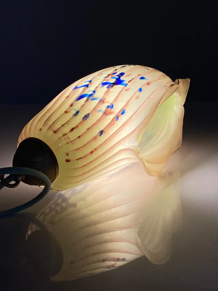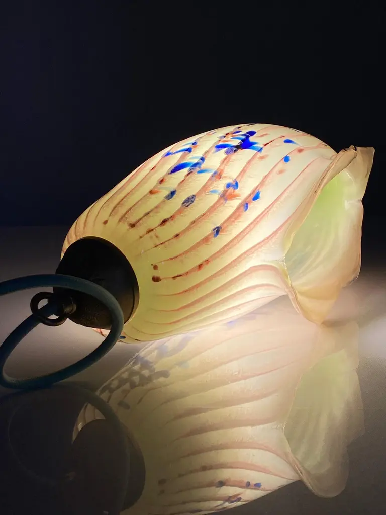 This is a new work by Mattia Biagi in a glass.The sculptural lamp can be used as a table lamp or hang.