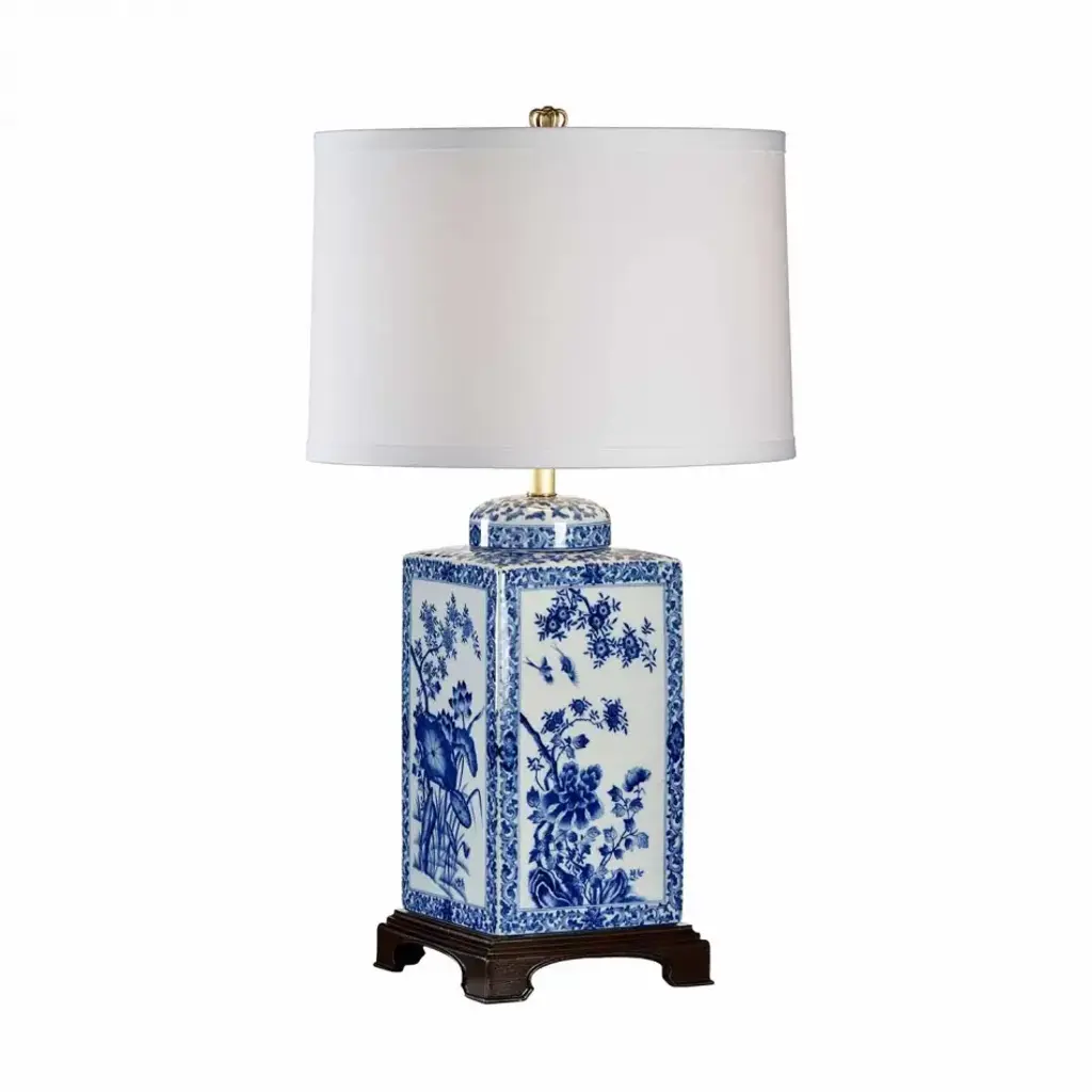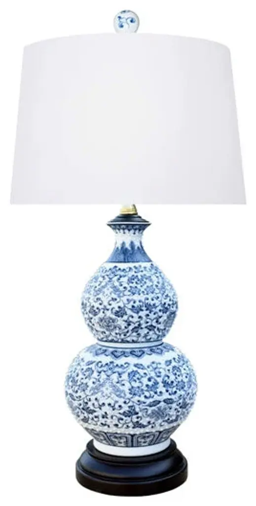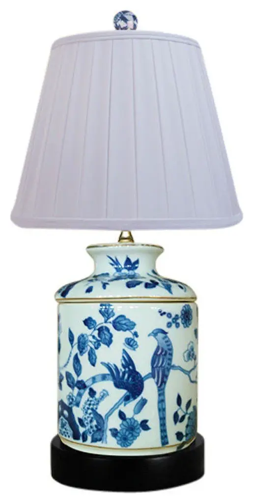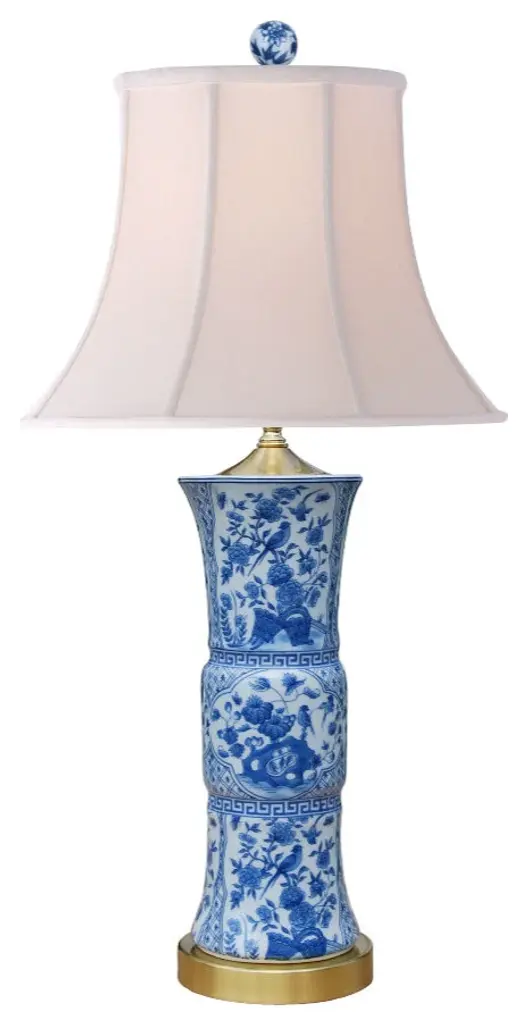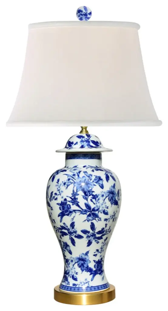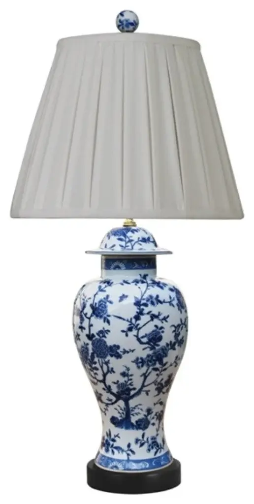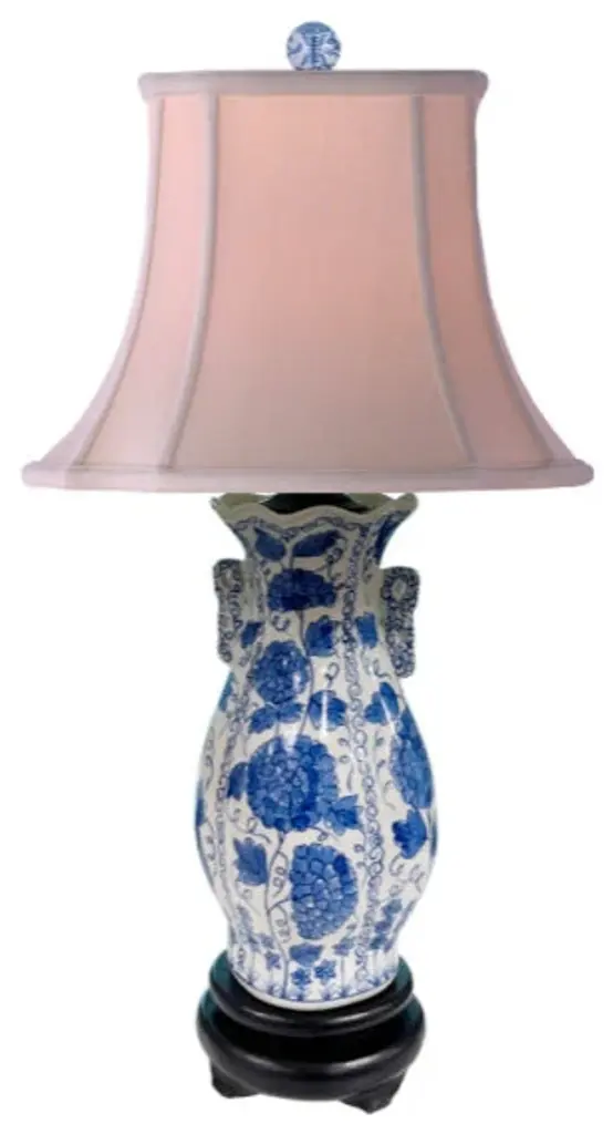 Please note : As most of our porcelain pieces are hand made and hand painted they may be slightly different from the photo in both shape and the way it is even colored! We do our best to find the one that is most common but sometimes they will be slightly different.B/W PORCELAIN LOTUS VASE LAMP 27"HIGH 14" WIDE LAMP BODY HEIGHT: 16" LAMP BASE DPTH AND WIDTH: 7" X6.3" 3 WAYS SOCKET, MAXIMUM 100W, UL LISTED SHADE CODE: QS/14MW SHADE COLOR: NATURAL WHITE