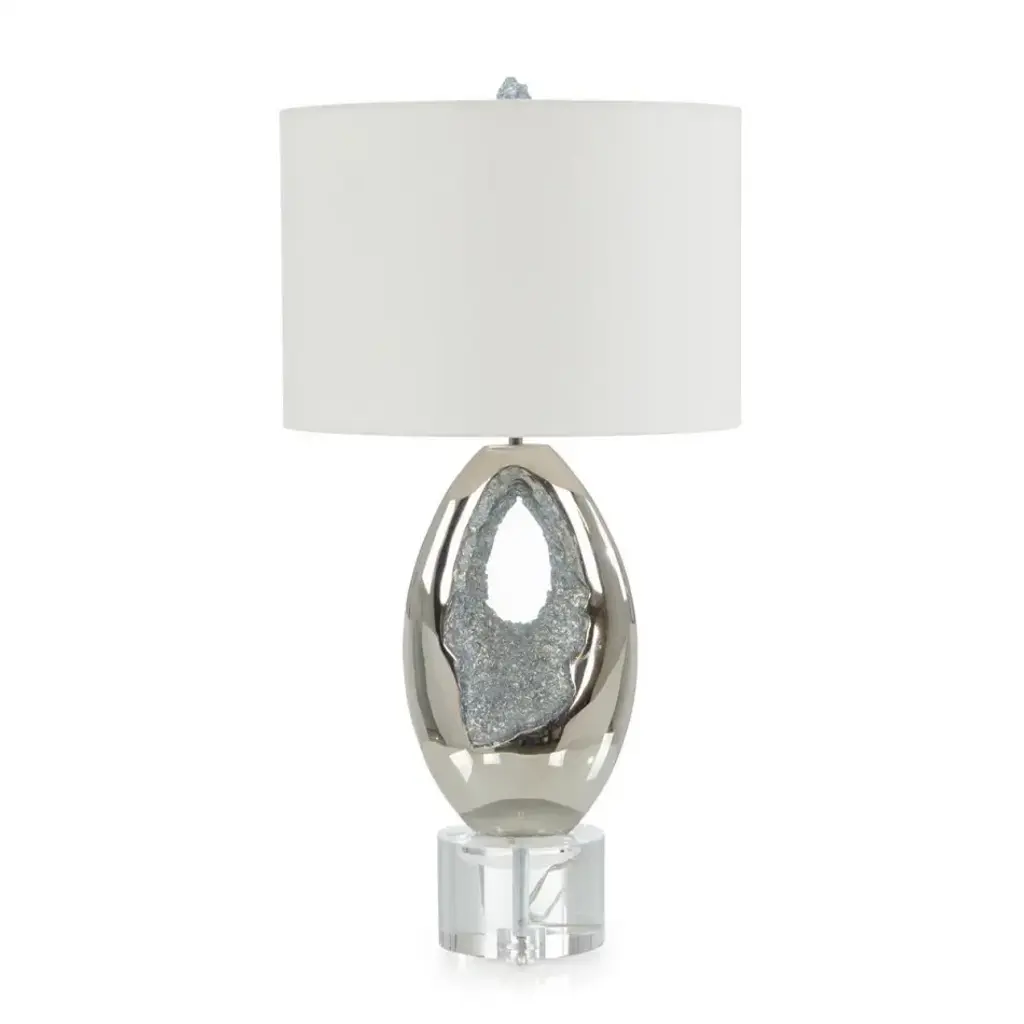 Blue Geode Table Lamp 30.25"h Polished Nickel And Sea