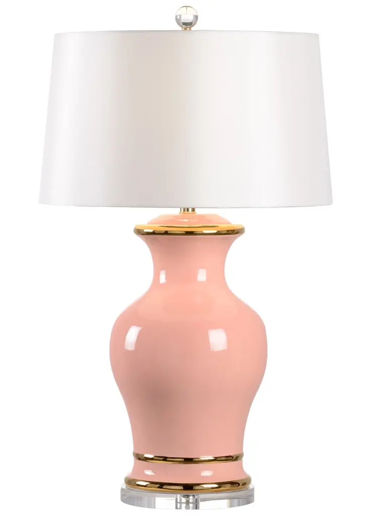 This blush pink porcelain table lamp by Legends of Asia is perfect for any room in your home that you want to add a fresh pop of color Small: 16"W x 16"D x 28"H Made of fine porcelain. Free shipping in the U.S.