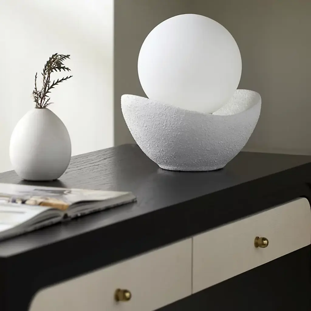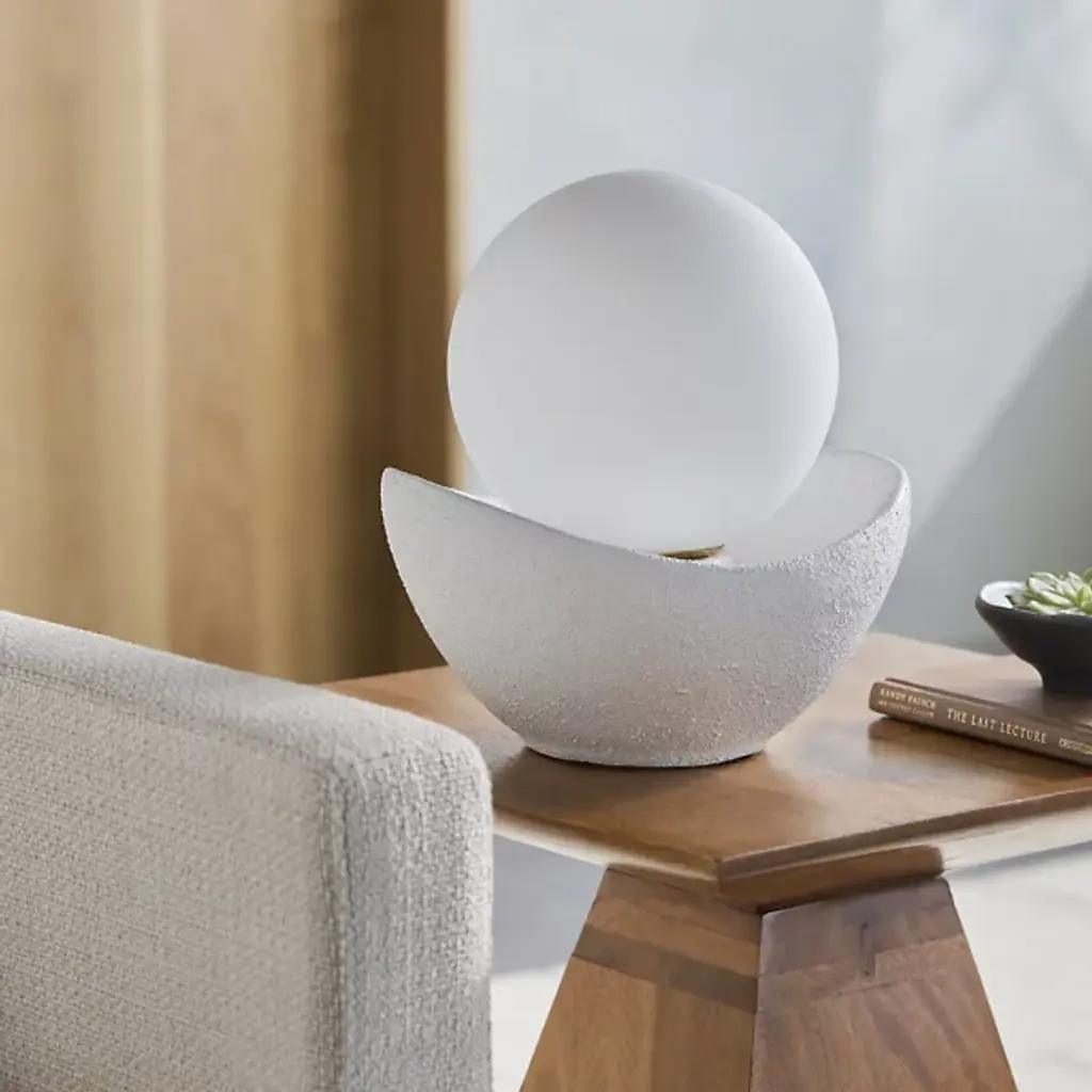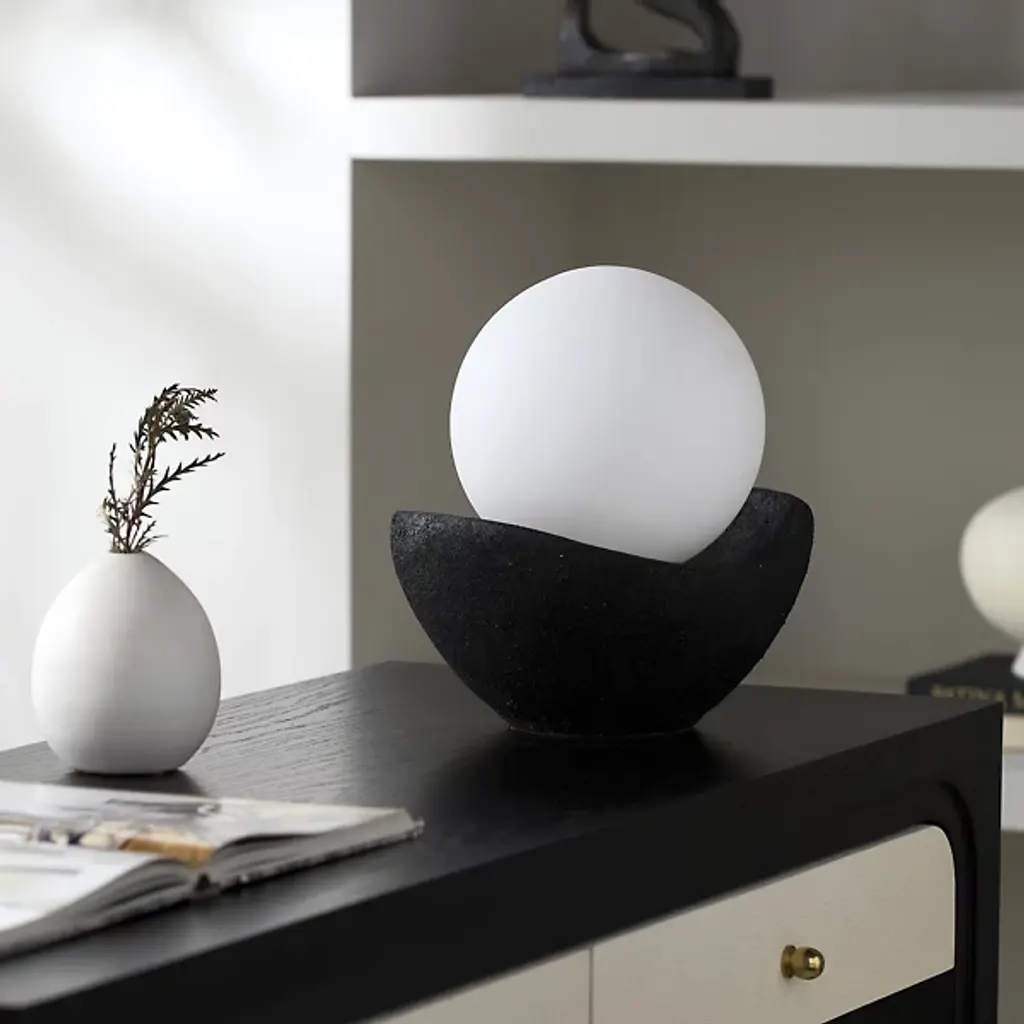 The Bocca Table Lamp from Surya breaks conventional design rules with its cement-glass pairing. It embraces transparency with its rounded glass shade that reveals rather than conceals the light source. The lamp’s cement base provides unexpected weight and texture, creating a deliberate contrast against the perfectly smooth glass sphere. Its cord-mounted switch makes operation effortless, allowing this compact accent light to bring focused illumination to spaces where conventional lamps would overwhelm—narrow consoles, petite side tables, and crowded bookshelves.
