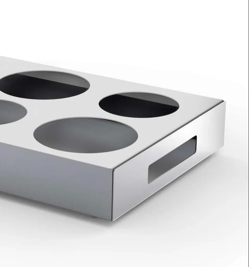 Bodil Kjaer Serving Cart Bottle holder with 6 compartments For CassinaA serving cart, designed by Bodil Kjær for the modern living room, where welcoming cheer is encouraged by versatile furniture that elegantly enhances new domestic lifestyles and a quest for comfort.From the postwar period, Bodil Kjær opened up her home to a freshnew camaraderie encouraged by versatile furniture that translated thenew domestic routines and a renewed need for comfort into tangibledesigns. With a lively social life, and to solve the problem of kitchenslocated far from the living room and to not miss out on serving herguests while continuing to converse with them, Kjær designed ServingCart, a food and beverage cart in solid wood with colored centershelves and upper shelves in stainless steel. Bodil Kjær had picked upon the changes in lifestyles, between dinners eaten in front of the TVor on the patio, in homes that were becoming smaller and smaller. Notby chance, Serving Cart can be tucked away under the table when notin use, or kept out, like a small, elegant architectural accessoryStructure of drawer and removabledividers· In solid Canaletto walnut withnatural finish, ash with stained oakfinish or stained black with low-glossfinish.Intermediate shelves· In colored Compact HPL (HighPressure Laminate).Upper shelves· In brushed stainless-steel sheetbonded to black MDF.Wheels· In metal painted matte black withblack rubber tread.Optional accessories· In brushed stainless steel.· Hanging stemware rack with 3 slots(6-12 stem glasses).· Bottle holder with 6 compartments(3 wine and 3 champagne).· Glassware tray with 3compartments (6-12 glasses).Important information regarding images of products:Please note that some of the images show other colors and variations of the model, these images are only to present interior design proposals. The item that is selling is on the first image.Important information regarding color(s) of products:Actual colors may vary. This is due to the fact that every computer monitor, laptop, tablet and phone screen has a different capability to display colors and that everyone sees these colors differently. We try to edit our photos to show all of our products as life-like as possible, but please understand the actual color may vary slightly from your monitorAbout the Designer:Bodil Kjær, Professor, Architect MAA (Member of the Association of Academic Architects in Denmark) was born in Denmark in 1932. She was educated in Denmark, England and the USA, and practised as an architect, designer and planner from her own offices in Copenhagen and London. Between 1955 and 1963, while designing public interiors she developed a series of elements of architecture to solve problems of functional and aesthetic nature. These pieces of furniture, lamps and glass were not designed directly for production but, as other architects discovered them and wanted them for their buildings, they were put into production and marketed in the USA as well as in Europe. Some of these pieces are still available, mostly at auctions, and the Office Desk, today produced by Karakter, can also be seen in three early Bond movies and in recent British films and television series.Bodil Kjær has now returned to Denmark and lives on the east coast of Jutland where she continues to teach, research and participate in the development of the city of Aarhus.About The Manufacturer:Established in 1927 by Cesare and Umberto Cassina in Meda, Italy, Cassina launched industrial design in Italy in the 1950s, based on a totally innovative approach that marked the transition from artisan production to mass production. With a mindset focused on research and innovation, Cassina combines technology and long-standing artisan craftsmanship. Memory, research, innovation. Cassina blends traditional skills and superior productivity, meticulous attention to detail and passion, uniqueness and experimentation, wellbeing and sustainability. Today, the company continues to address new lifestyles with the creation of complete, harmonious interior decor solutions that embody the best contemporary design for all areas of the home.