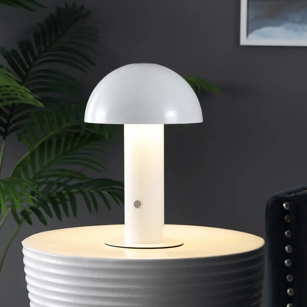 Our portable mushroom lamp''s minimalist silhouette is the perfect modern accent for a desk, bar console or vanity. This cordless, rechargeable lamp provides dimmable mood lighting for your dining room, living room, bedroom, or entry. The durable metal design features integrated LED bulbs and a touch sensor to control the three brightness settings.Features:• Both the mushroom-inspired shade and base are crafted from high-quality metal with a clean white finish• Cordless, dimmable lamp has a rechargeable battery for convenient portable lighting• At just under 11" tall, this lamp can provide ambient lighting just about anywhere• Eco-friendly ed LED bulb included• Dimmable Integrated 2W LED Bulb• Color: White• Body Material: Metal• Includes: One (1) lamp• Assembly RequiredDimensions:• Lamp: 10.75 inches high x 7.125 inches wide x 7.125 inches deepAbout us:You see a lamp.We see a decorative work of art.A perfectly curved shade casts a dramatic shadow on a floor. Compatible with LED lightbulbs: as easy on the environment as they are on the eyes. The JONATHAN Y Lighting collection considers every detail from impeccably sourced materials to designer styling. And our prices are so attractive, we''ve transformed a functional necessity into a fashion accessory.JONATHAN Y Lighting - a fashion revolution in home decor.