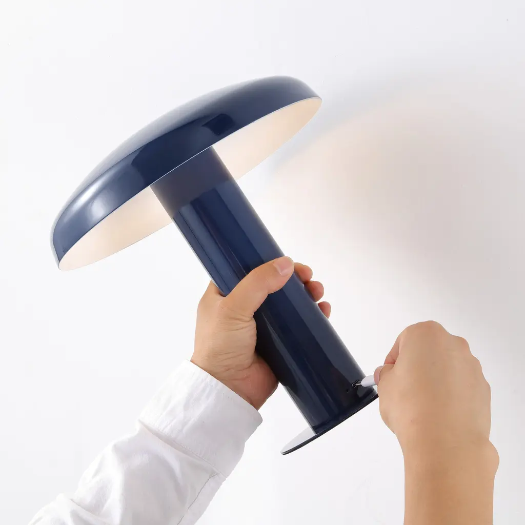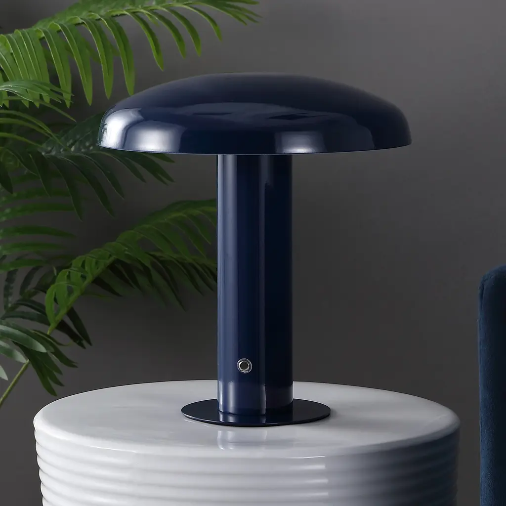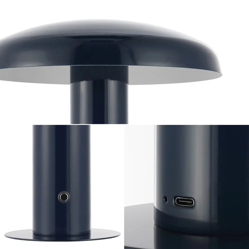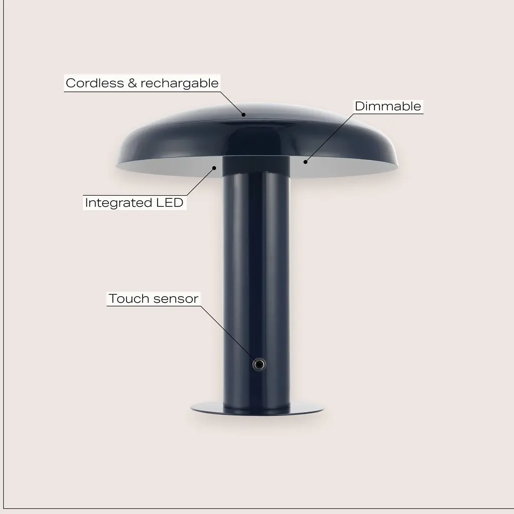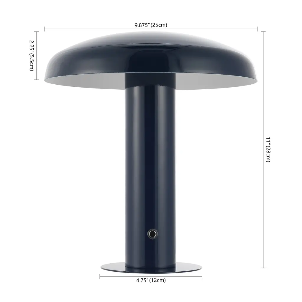Boletus 11" Contemporary Bohemian Rechargeable/cordless Iron Integrated Led Mushroom Table Lamp, By Jonathan Y - Navy