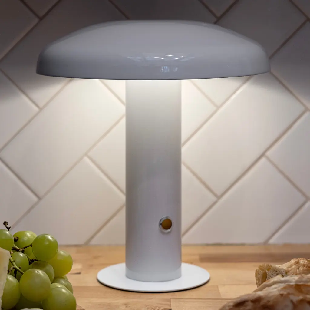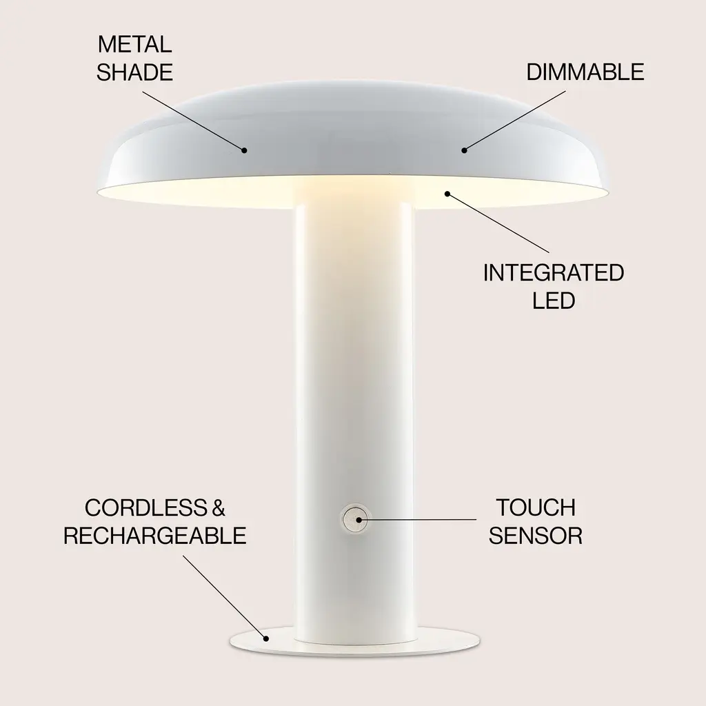 Boletus 11" Contemporary Bohemian Rechargeable/cordless Iron Integrated Led Mushroom Table Lamp, By Jonathan Y - White