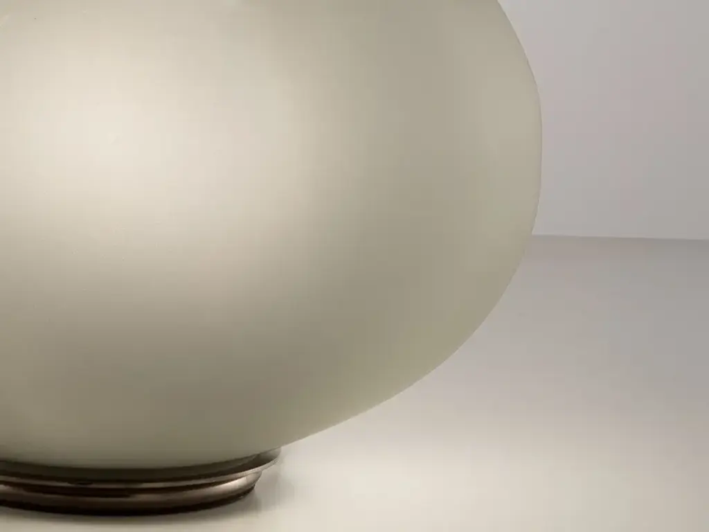 The Bolla has two variants: the innovative version, cement grey in colour and Baloton Crystal, and the Classic Satin Variant. They are both produced in two sizes, as a chandelier or table lamp.