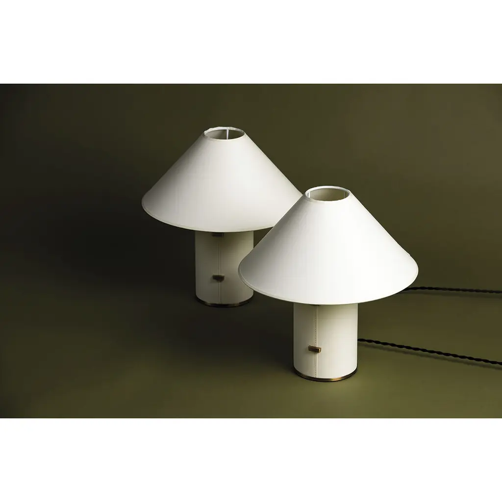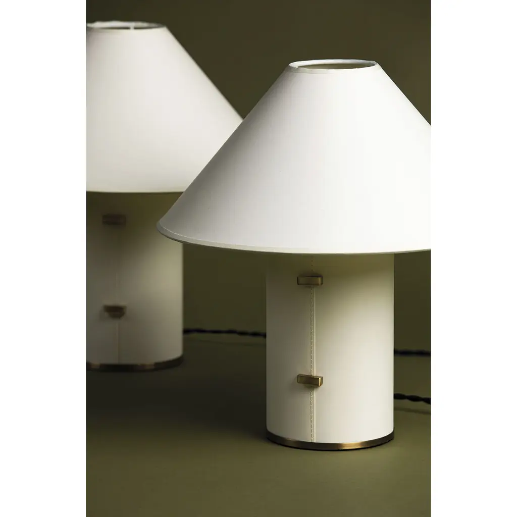 Characterized by its parchment-wrapped body, stitch detailing, and clasp-like Patina Brass accents, Bond is both relaxed and refined. Light filters through the tapered parchment shade, creating a warm, ambient glow that adds to the design's natural, organic feel. Bond is available in two sizes, delivering a clean, elevated aesthetic to a variety of spaces.