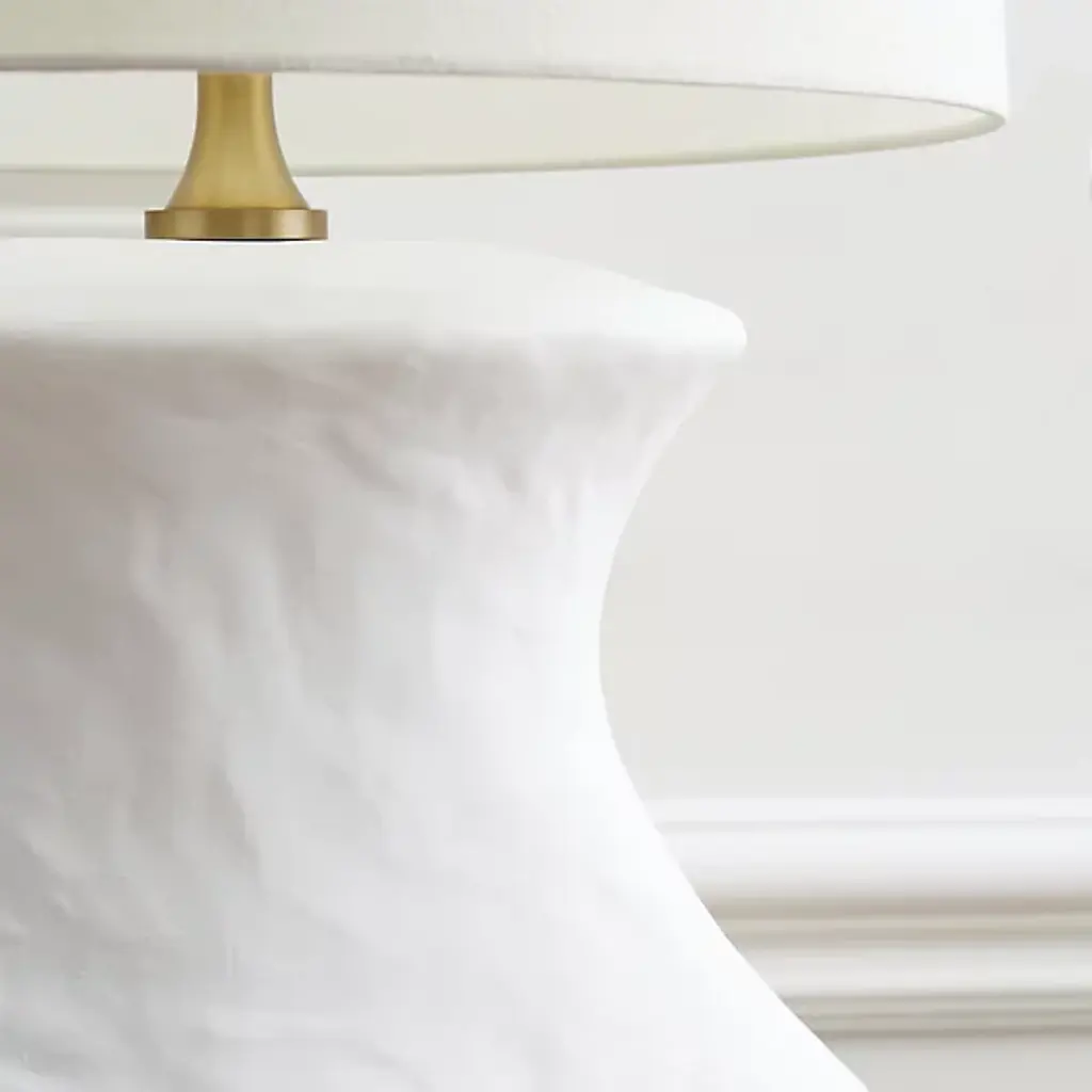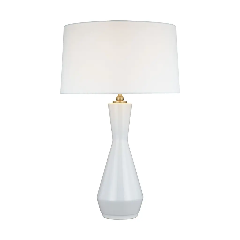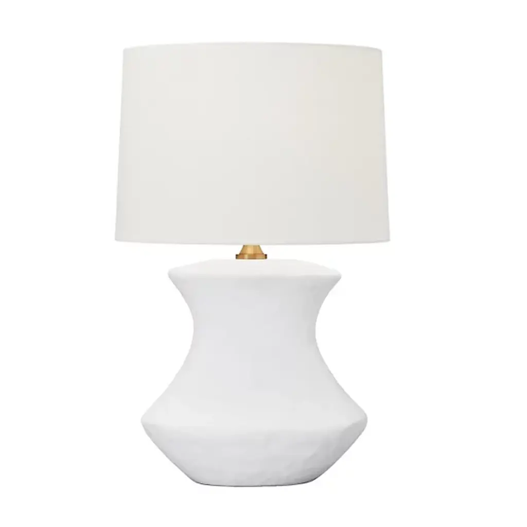 A Stylish design resembling the traditional simplicity of bone china, the Bone Table Lamp from Visual Comfort Studio, formerly known as HABLE, offers a signature sculptural style to its surroundings. A china body expands from a rounded base, sweeping inward again before sweeping out to a rounded top. The fixture’s potent lamping is surrounded by a flared fabric shade, obscuring bright glare and transforming it into a pleasing The matte finish is expertly applied, showing off an organically-surfaced texture that glows when burnished by direct downlight.