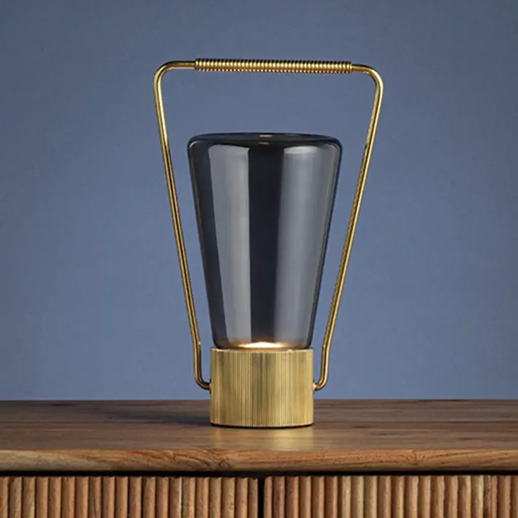 The Booker Rechargeable LED Table Lamp from Hudson Valley Lighting carries its own modern twist on lantern design with a prominent loop handle that insists on being picked up. The smoky glass shade mutes light into a gentle glow while the metal framework gives the lamp real substance and weight. This portable light works especially well in tight spaces, and its rechargeable battery means you can place it anywhere without worrying about outlets. Its compact form and practical handle make it perfect for moving between rooms as needed, from bedside reading to outdoor dining when the sun goes down.