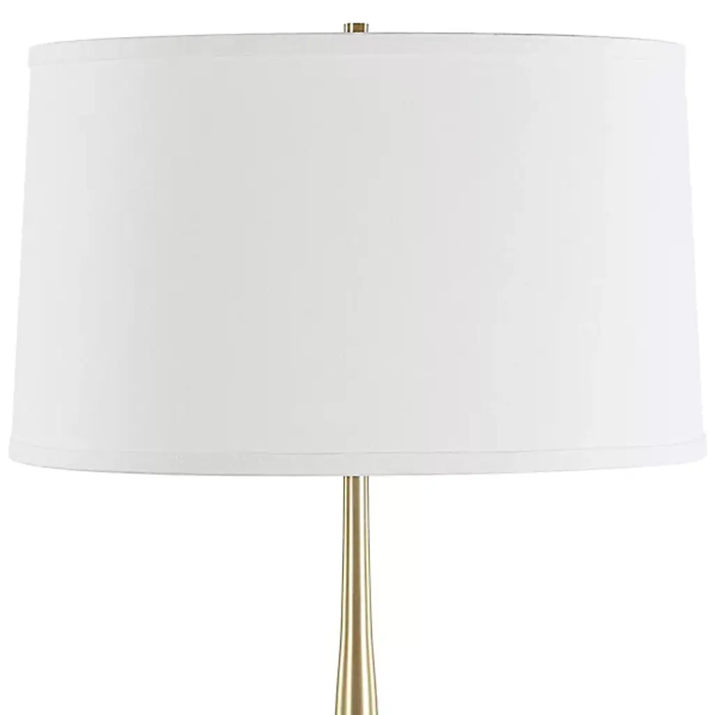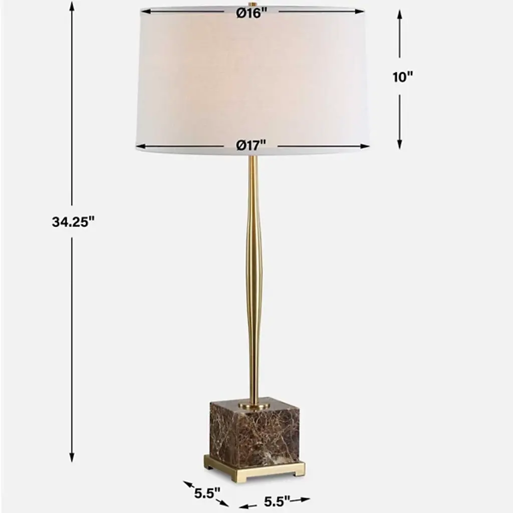 The Booker Table Lamp from Uttermost stands on a distinctive square marble foot that grounds its vertical design. The antique brass spindle and hardware add warmth and detail to the lamp's structural elements. The slightly tapered round shade with natural slubbing gives the light a gentle quality that enhances living spaces. This lamp bridges the gap between classic and modern aesthetics, making it versatile for home libraries, living rooms, or bedside tables. Its proportions create a balanced profile that draws attention without demanding it.