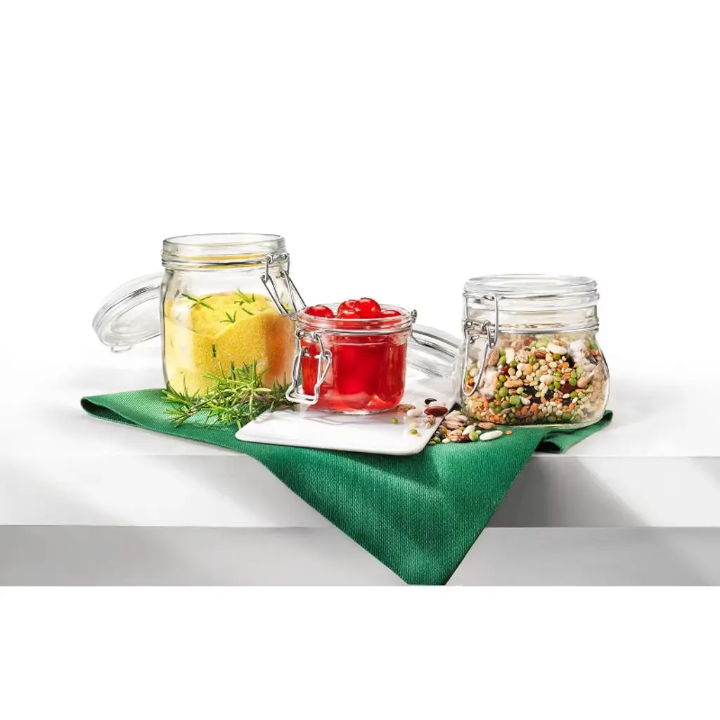 Bormioli Rocco’s Fido jars crafted from Italian glass are perfect for storing pasta, rice, and other dry foods. With the rubber gasket to keep food fresh and the metal clamp for easy use, these jars are essential in any kitchen. Fido jars are available in a variety of sizes and colors and are perfect for any type of food storage. Style & Polyvalence - Beyond the kitchen: many sizes perfect for preserving, home decoration and original table setting Yes Glass - glass containers are 100% recyclable, reusable, safe, natural and hygienic Tradition - perfect to realize pasteurized jams and preserves Inspiration - ideal for home decoration, to store small items and create unique gifts, all with a vintage soul.